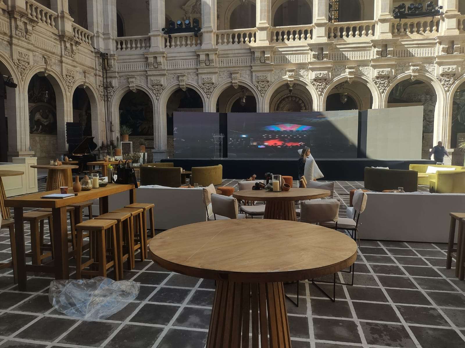 Como parte del montaje, el recinto fue decorado con arreglos florales, un piano negro de cola y centros de mesa con velas y jarrones. Además, se colocaron pantallas en el presídium, donde se proyectará una compilación de videos de ediciones anteriores, con el objetivo de promover la asistencia a la 198ª edición de este emblemático evento.