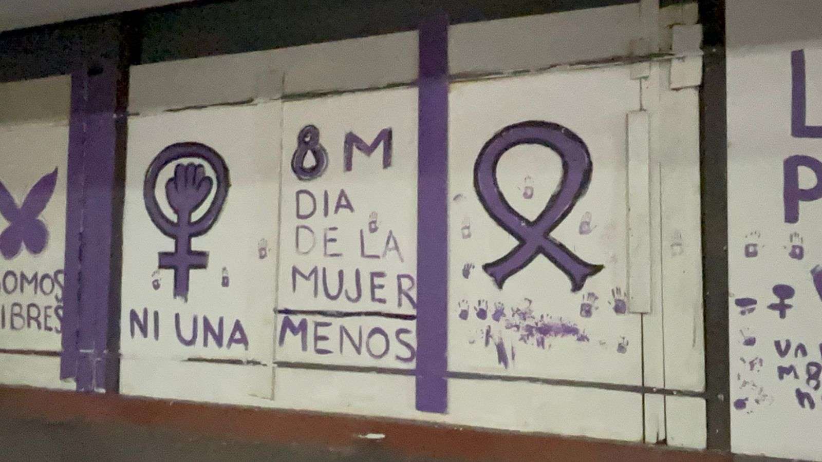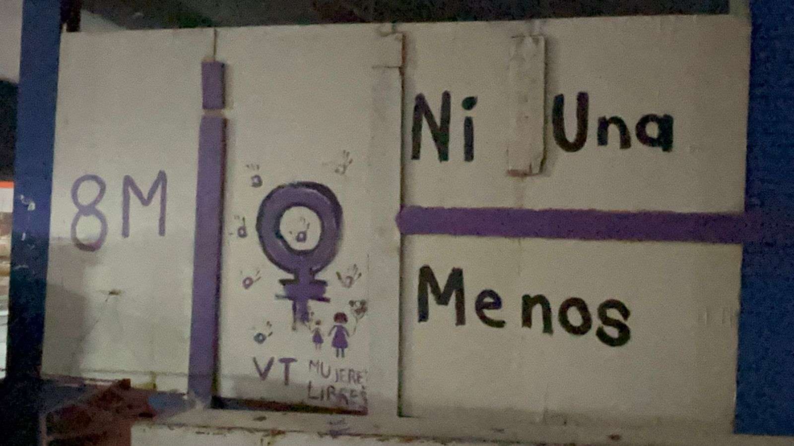 También se observan otras consignas como “Te quiero valiente, libre, independiente, autónoma, fuerte, viva, completa”, además de panfletos de carácter partidista adheridos a las vallas metálicas instaladas en la zona.