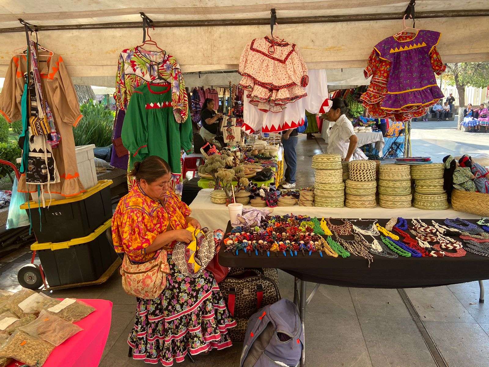 Chihuahua.- En la Plaza de Armas se instaló el corredor artesanal “Tamojé Newá”, donde 80 artesanos y artesanas de la etnia tarahumara, están ofreciendo sus artesanías con el objetivo de dar a conocer su riqueza cultural y las raíces de su comunidad.