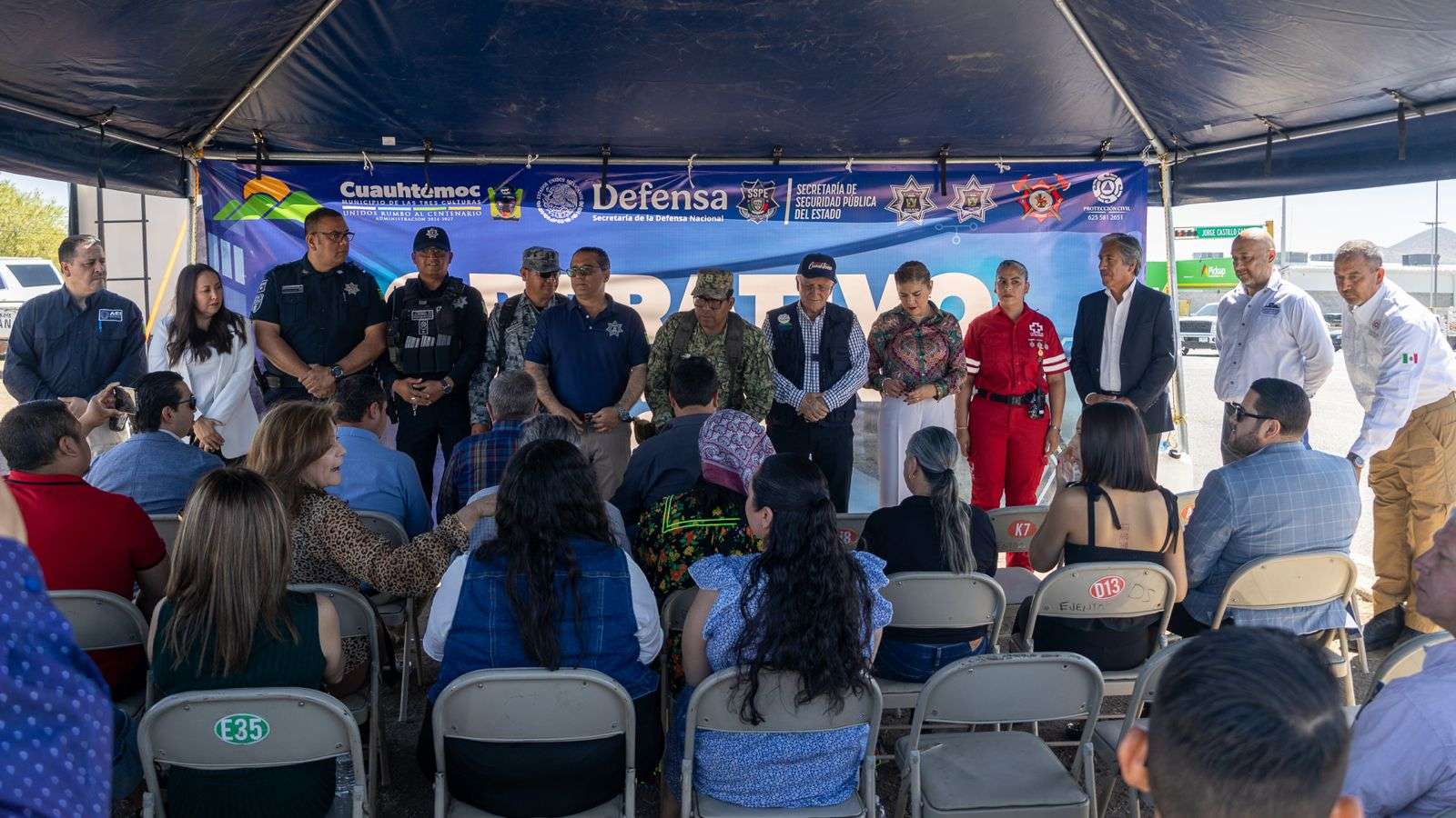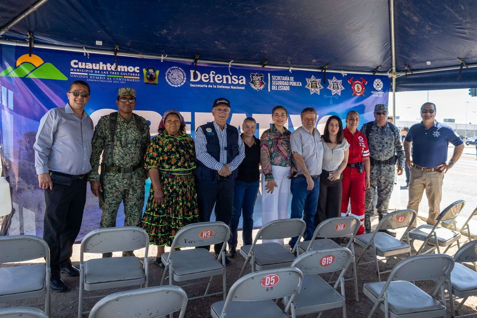 También asistieron el Ingeniero René Martínez Bustamante, Comandante de Bomberos Cuauhtémoc; la Jefa de Socorros de Cruz Roja Mexicana, Martha Nereyda Díaz; y el Coordinador Municipal de Protección Civil, Ingeniero Fausto Arias Rodríguez.