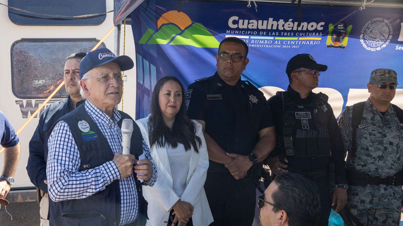 En su mensaje, el Director de Seguridad Pública y Vialidad Municipal, Licenciado Rafael Ernesto Cavazos Aragón, expresó que Cuauhtémoc se distingue, con orgullo, como la Puerta a la Sierra, siendo punto clave de tránsito y destino para miles de visitantes, a quienes se brinda orientación, seguridad y atención permanente durante su estancia.