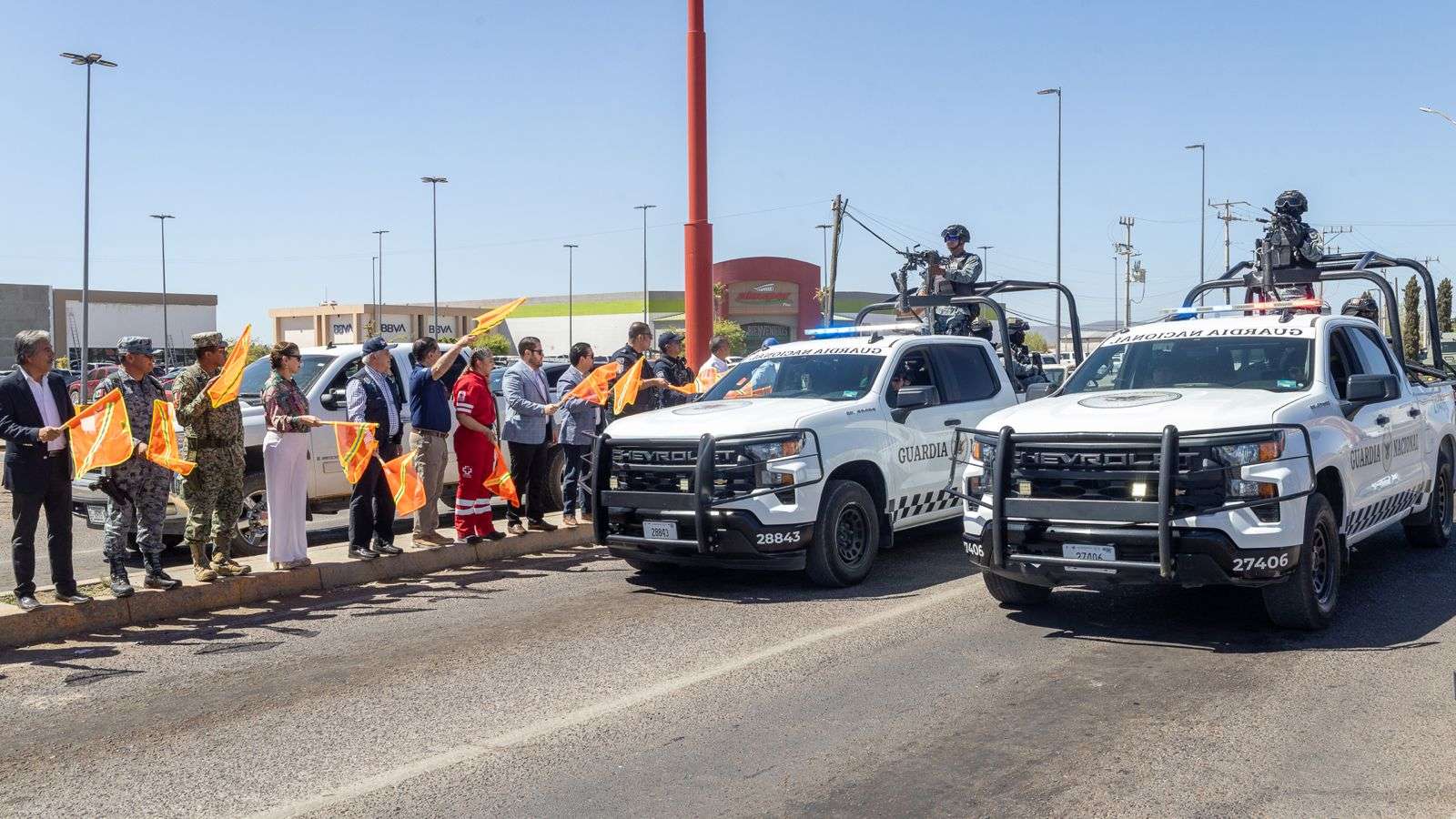 De igual forma, se contó con la presencia del Capitán 2do. de la Guardia Nacional, Ronal Lennin Gutiérrez Trejo, encargado de la 190/a Compañía; el Coronel de Infantería de Estado Mayor, Ramón López Alarcón, Comandante del 2do. Batallón de Infantería de la 42/a Zona Militar; el Licenciado Dante de la Garza Cuan, Delegado de Vialidad y Tránsito; el Inspector de Mando Único y Coordinador Operativo de Vialidad, Licenciado Jorge Aguilera; el Comisario de Mando Único, Licenciado Jesús Méndez Delgadillo; la Síndica Municipal, Profesora Lourdes Mendoza Rodríguez.