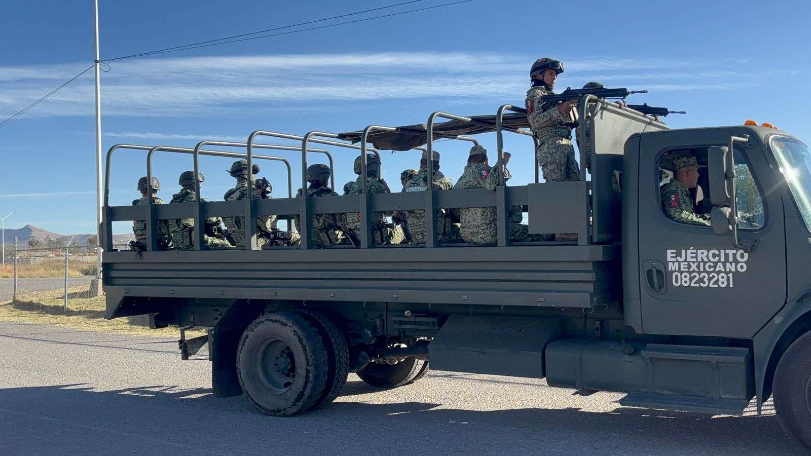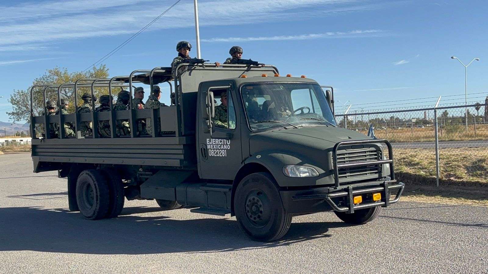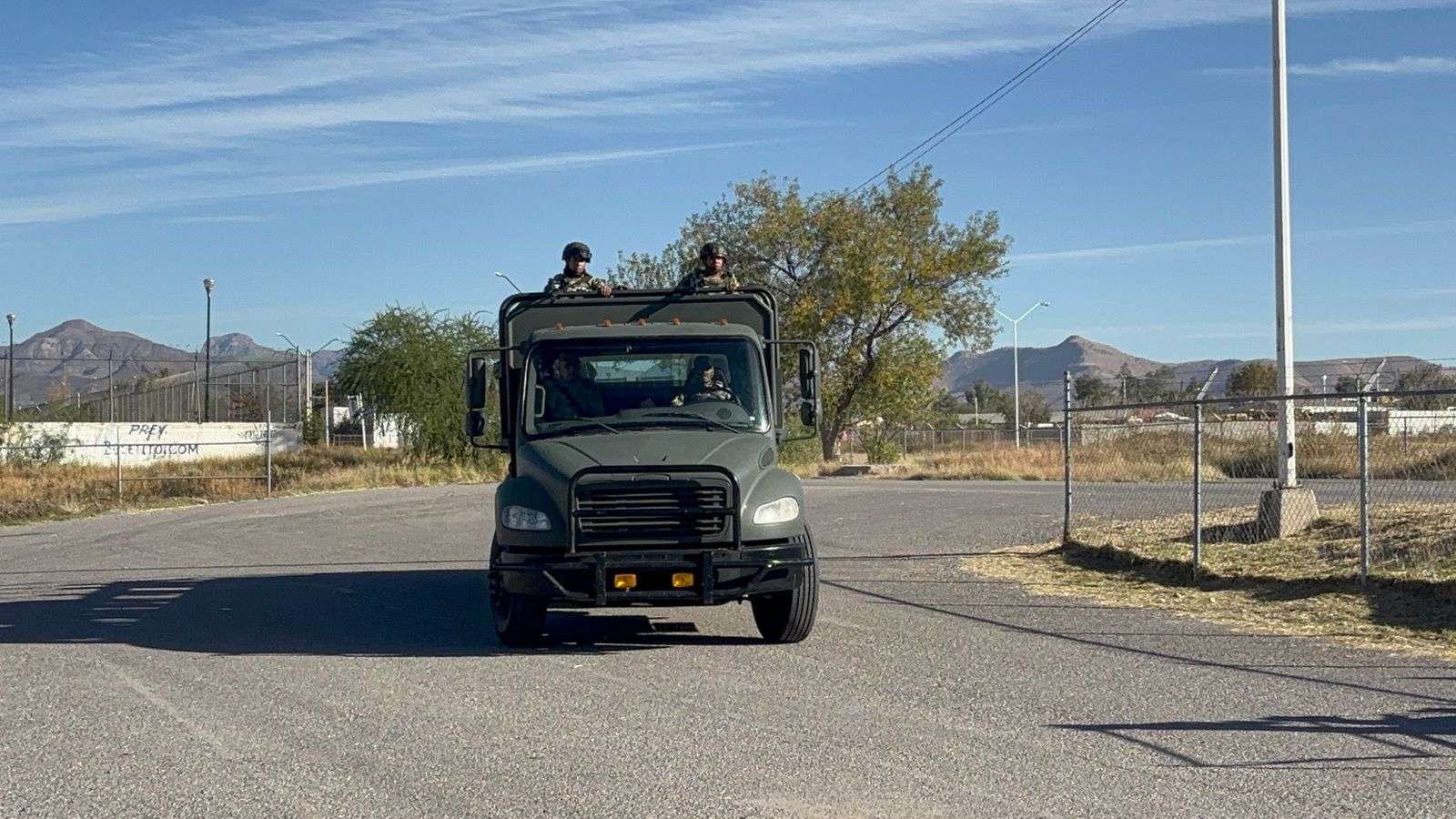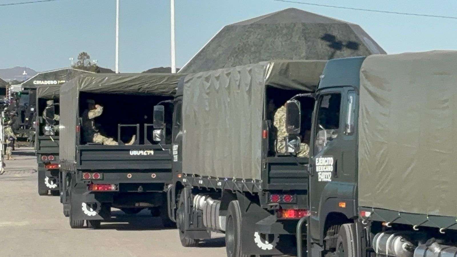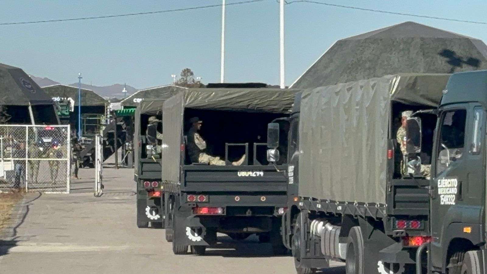 Chihuahua.- Un convoy de militares arribó a las instalaciones de la Feria de Santa Rita, para la instalación de la exposición militar La Gran Fuerza de México.
