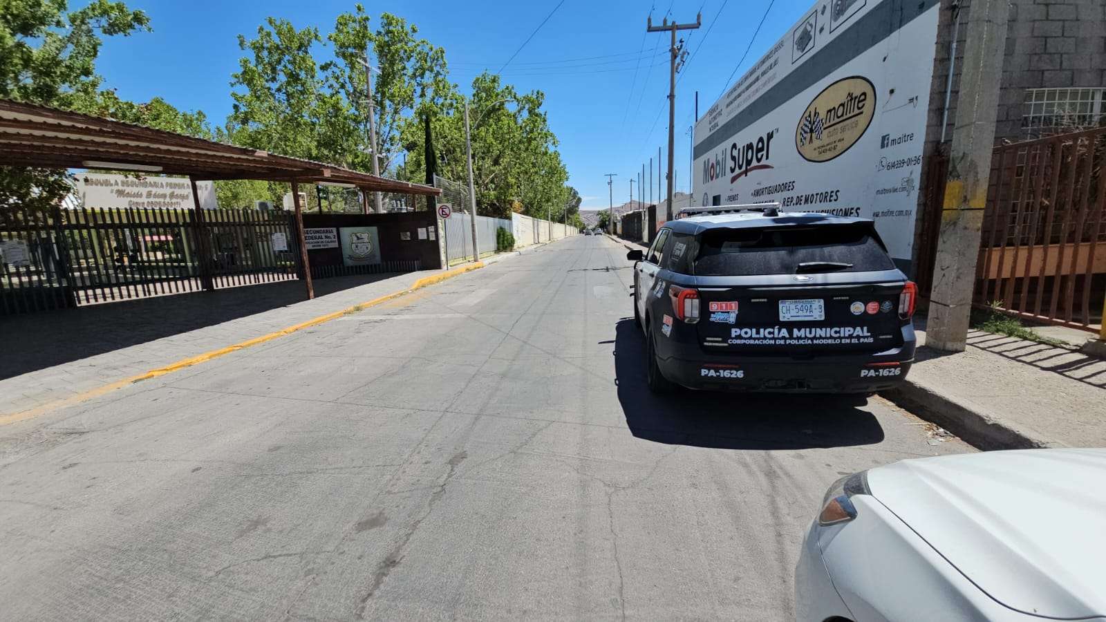 Chihuahua.- Una llamada al número de emergencias alertó a las autoridades sobre el hallazgo de un objeto sospechoso al interior de la Secundaria Federal número 2, ubicada en el cruce de la calle Pinabete y la avenida Tecnológico.