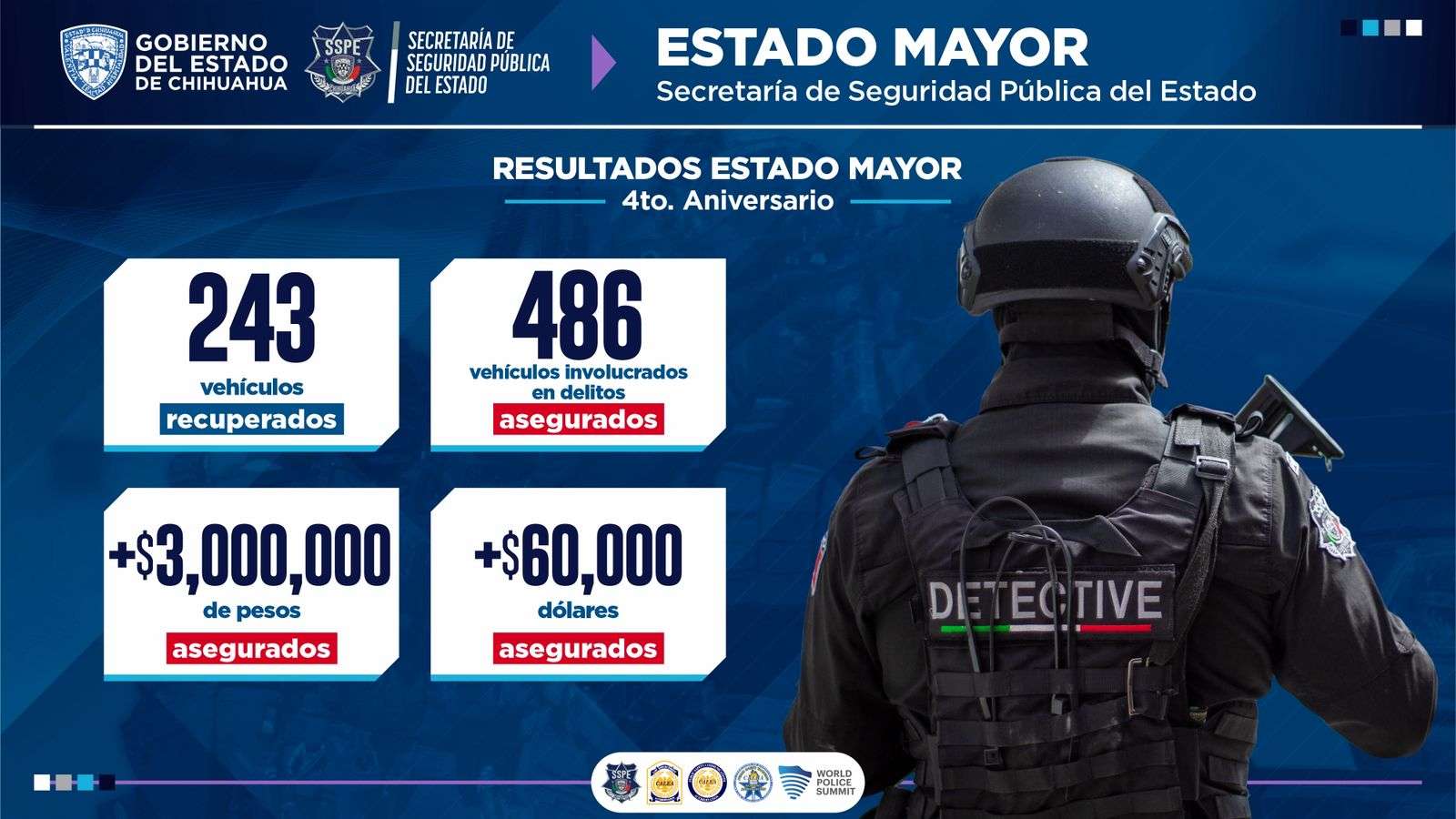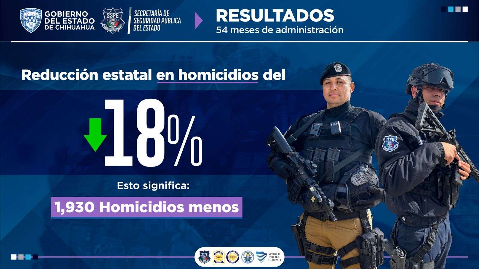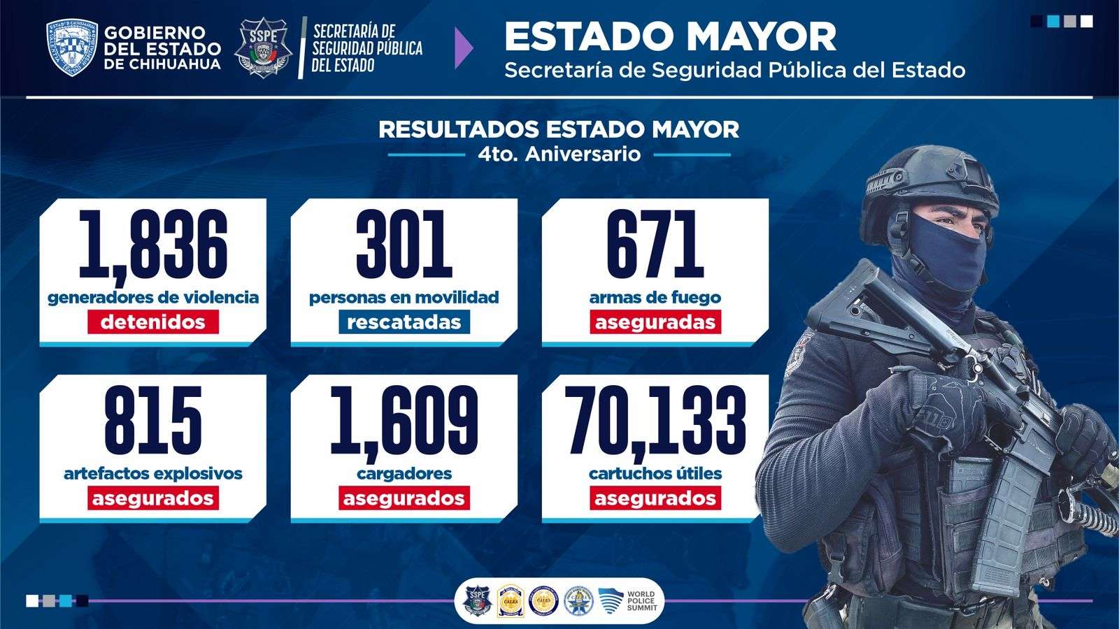 Este balance se presentó en el marco del Informe de Gobierno de la gobernadora Maru Campos, quien destacó el desempeño de la Policía del Estado en materia de seguridad y reconoció la estrategia implementada para la recuperación de la paz.