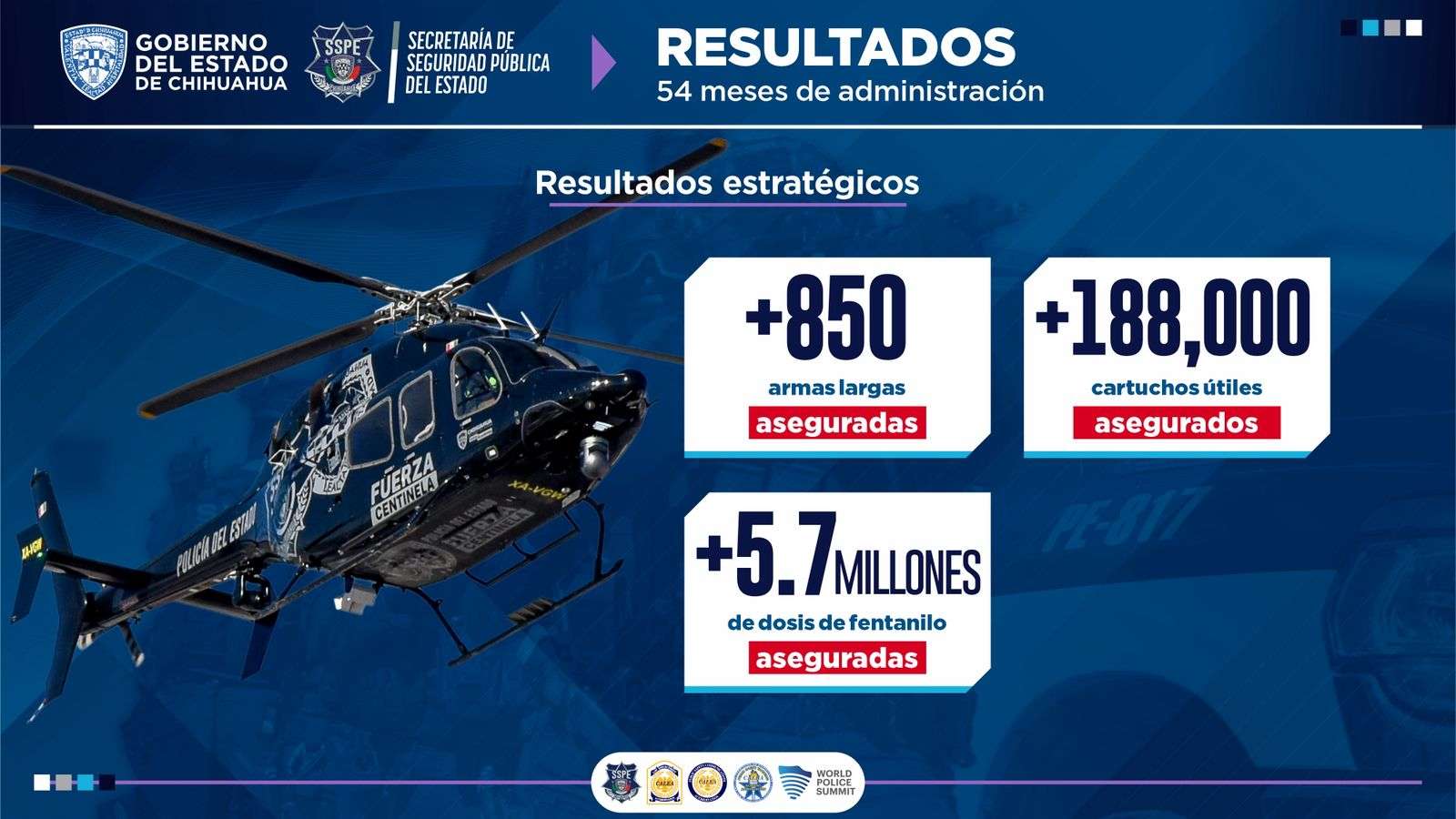 Chihuahua.- La Secretaría de Seguridad Pública del Estado (SSPE), a través de su titular Gilberto Loya Chávez, dio a conocer una serie de resultados alcanzados en 54 meses de trabajo continuo enfocado en garantizar la tranquilidad de la población en todo el estado de Chihuahua.