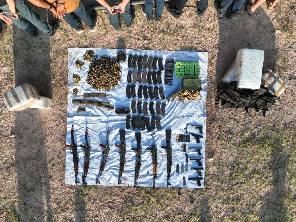 Pero, posteriormente, ya en lo oficial, resulta que en las fotos solo apareció el vehículo de los llamados “monstruo”, el fusil calibre 50 y dos cajas con parque.
