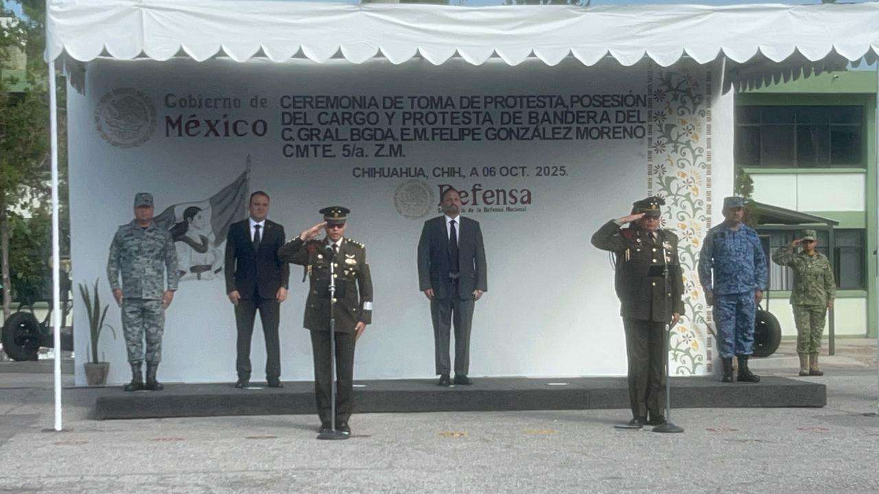 Chihuahua.- El general de brigada Felipe González Moreno tomó protesta como comandante de la 5.ª Zona Militar.