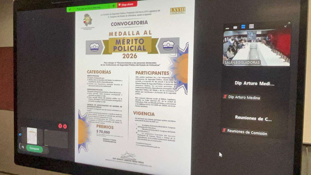 Chihuahua.- La comisión de seguridad pública y protección civil del congreso del estado, encabezada por la diputada Nancy Janeth Frías Frías, aprobó por unanimidad el acuerdo para el lanzamiento de la convocatoria de la Medalla al Mérito Policial, tras realizar ajustes estratégicos en la integración del jurado y el calendario de evaluación.