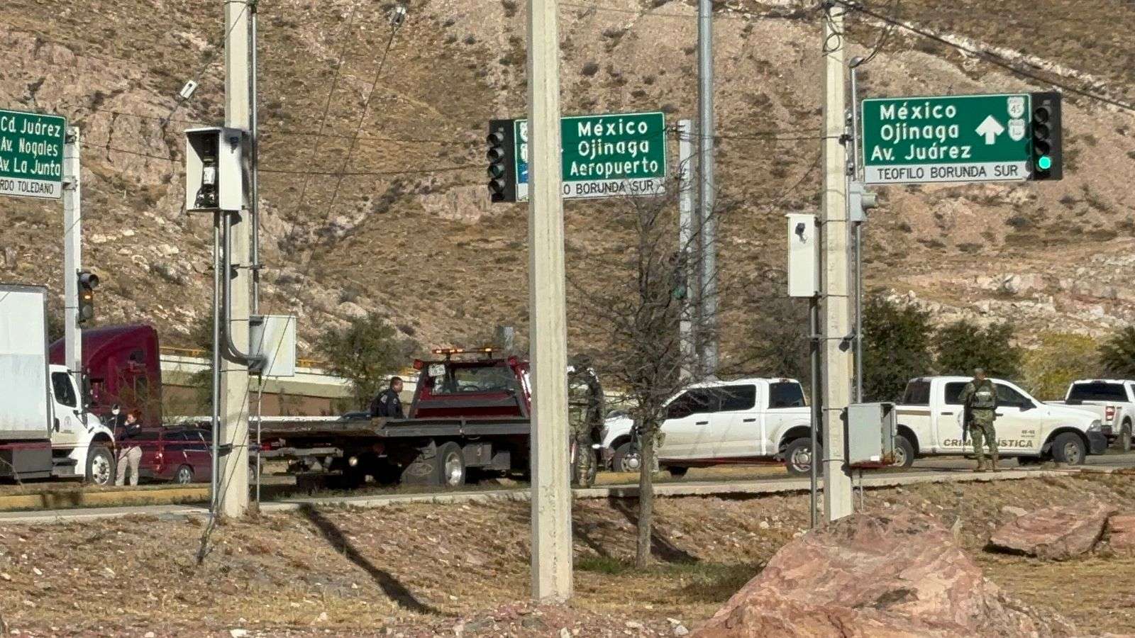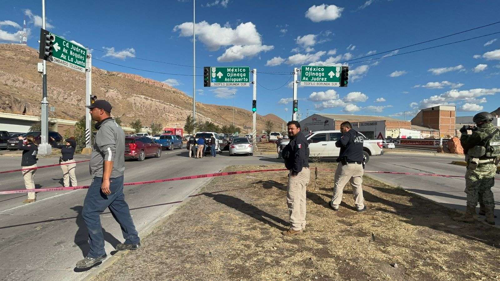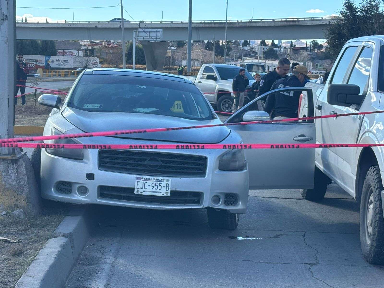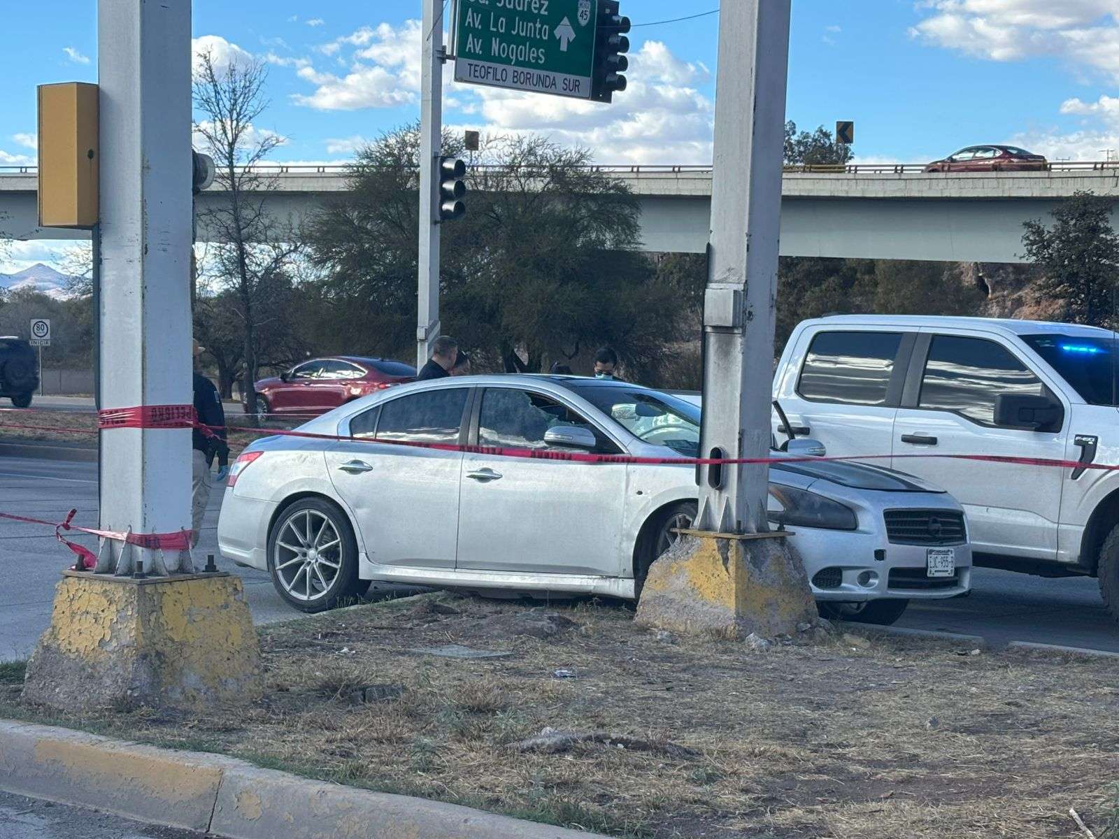 Chihuahua, Chih.– Tras una persecución en sentido norte-sur sobre la vialidad Sacramento, los tripulantes de un vehículo Nissan Altima detuvieron su marcha luego de impactarse en la intersección de Teofilo Borunda Y Lombardo Toledano, presuntamente al intentar escapar de un ataque armado.