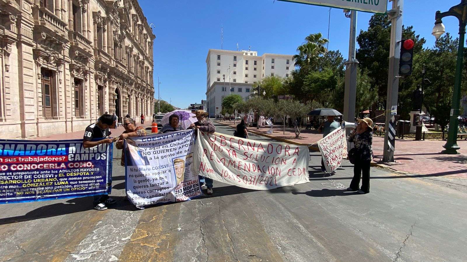 Chihuahua.- Un grupo de personas de la colonia Ladrilleros Norte encabezados por la señora Vicky Márquez y Dionisia Chaparro, cerraron la calle Aldama por falta de atención y apoyos prometidos.