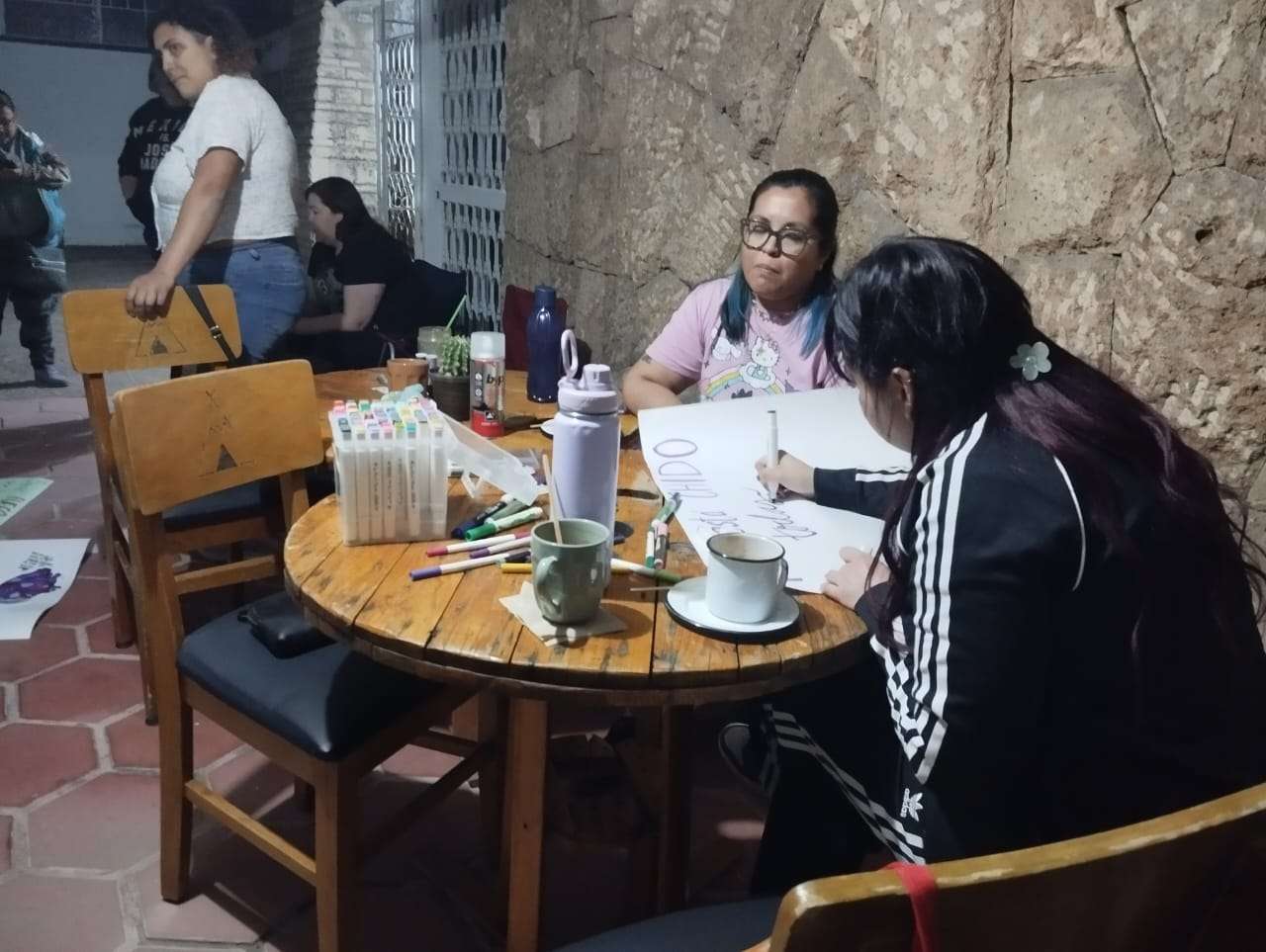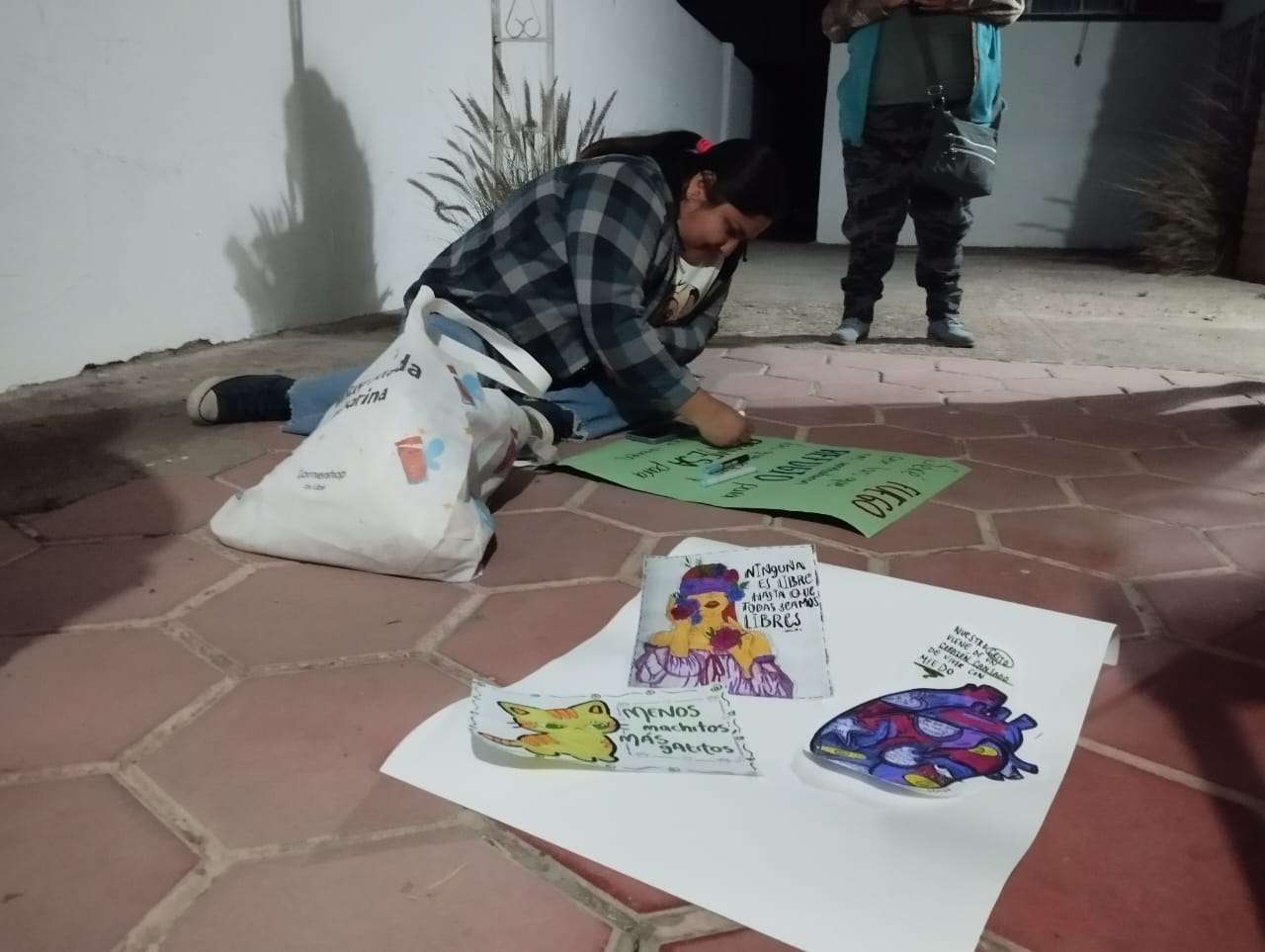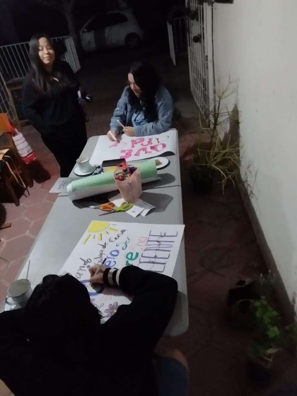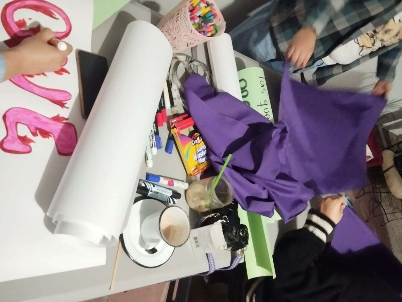 Chihuahua.– La colectiva “Sáficas del Norte” llevó a cabo una reunión en la que elaboraron las pancartas y los pañuelos representativos del colectivo, previo a la marcha por el 8M.