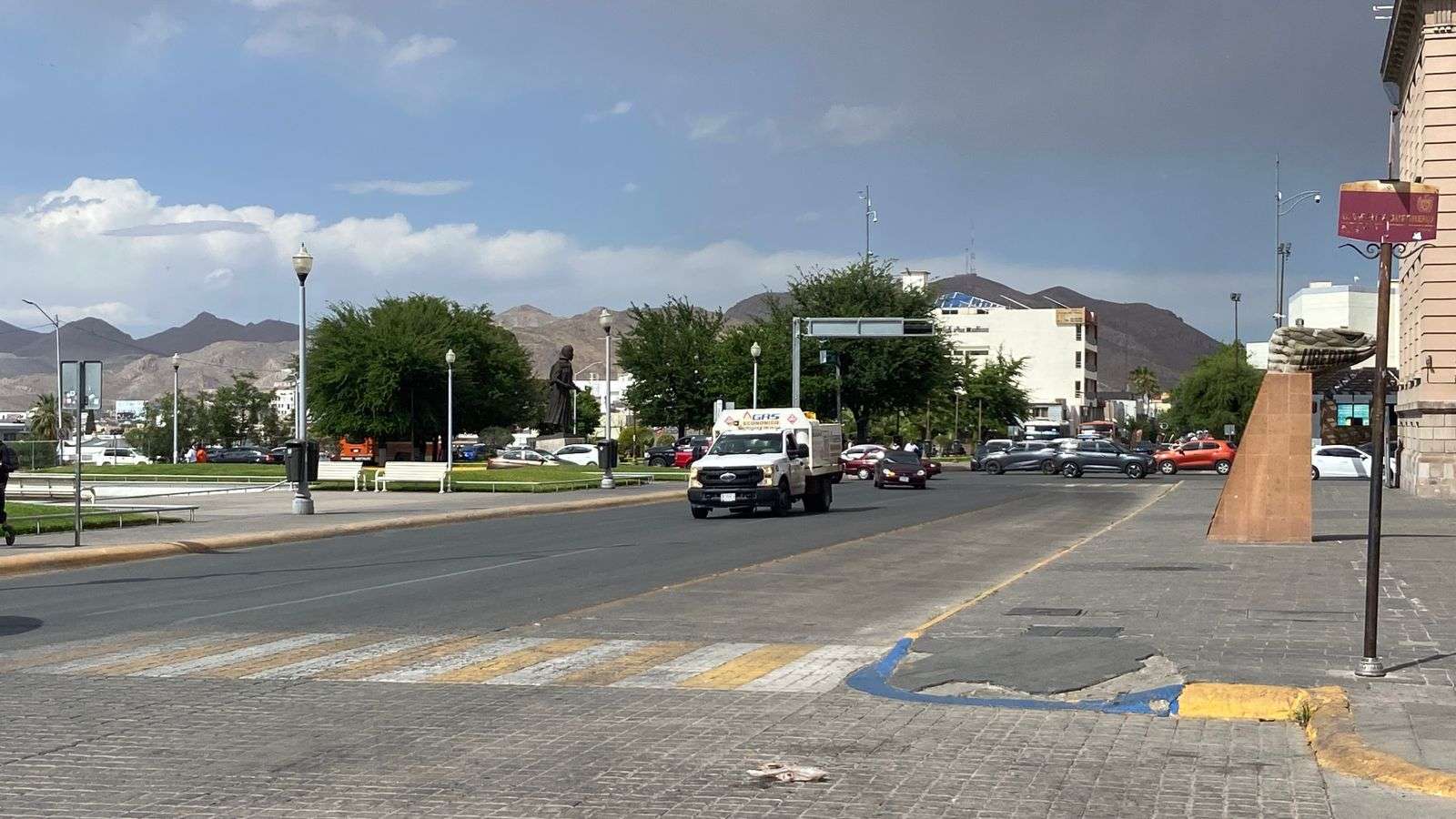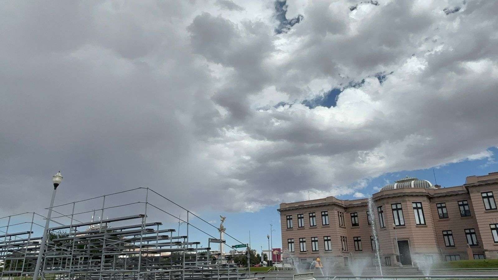 El cielo permanece parcialmente nublado, destacando la presencia de nubarrones oscuros sobre el primer cuadro de la ciudad. Según los modelos climáticos para este día, se espera que la temperatura mínima oscile en los 10 grados, mientras que la máxima se situará en los 28 grados.