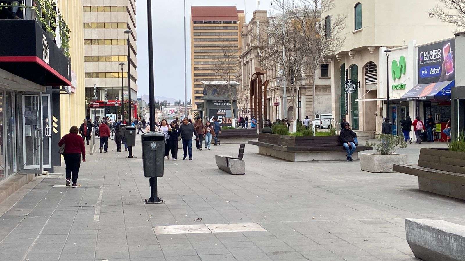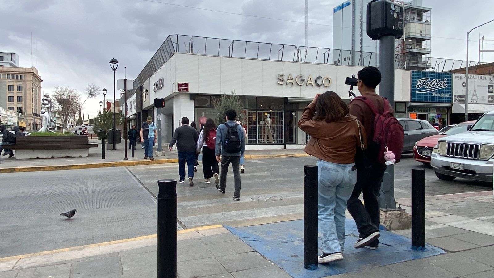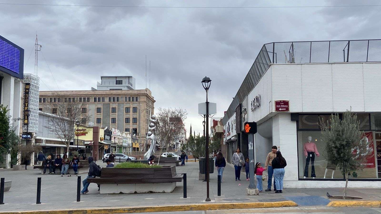 Chihuahua. - Una tenue llovizna sorprendió a los transeúntes en el centro de la ciudad durante la tarde de este sábado, generando un ambiente fresco y agradable entre quienes recorrían las calles del primer cuadro de la capital.