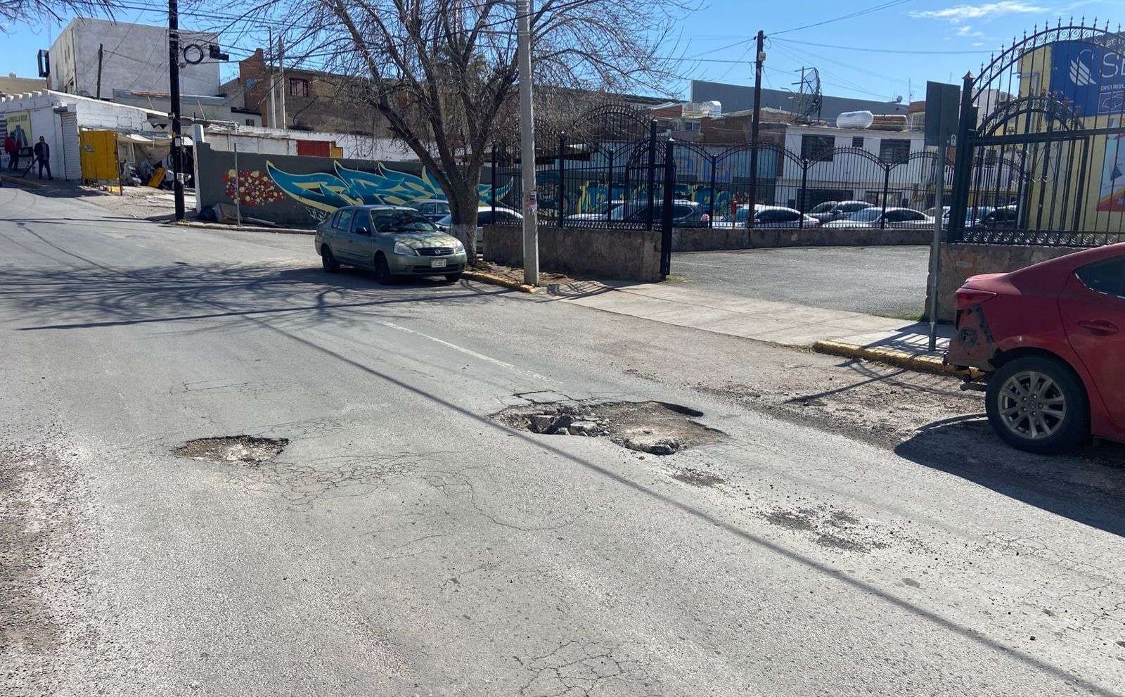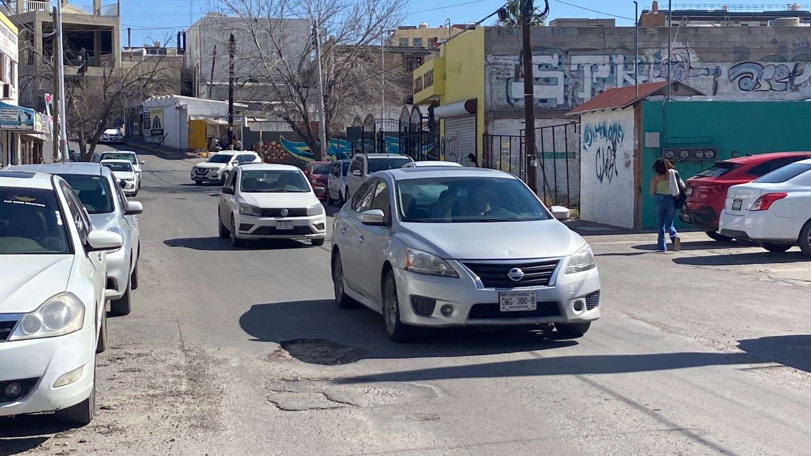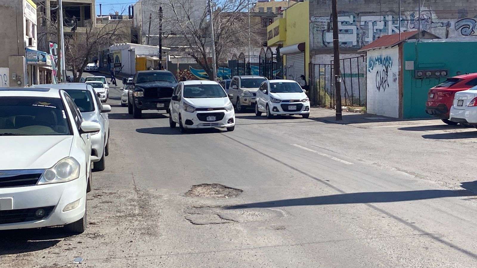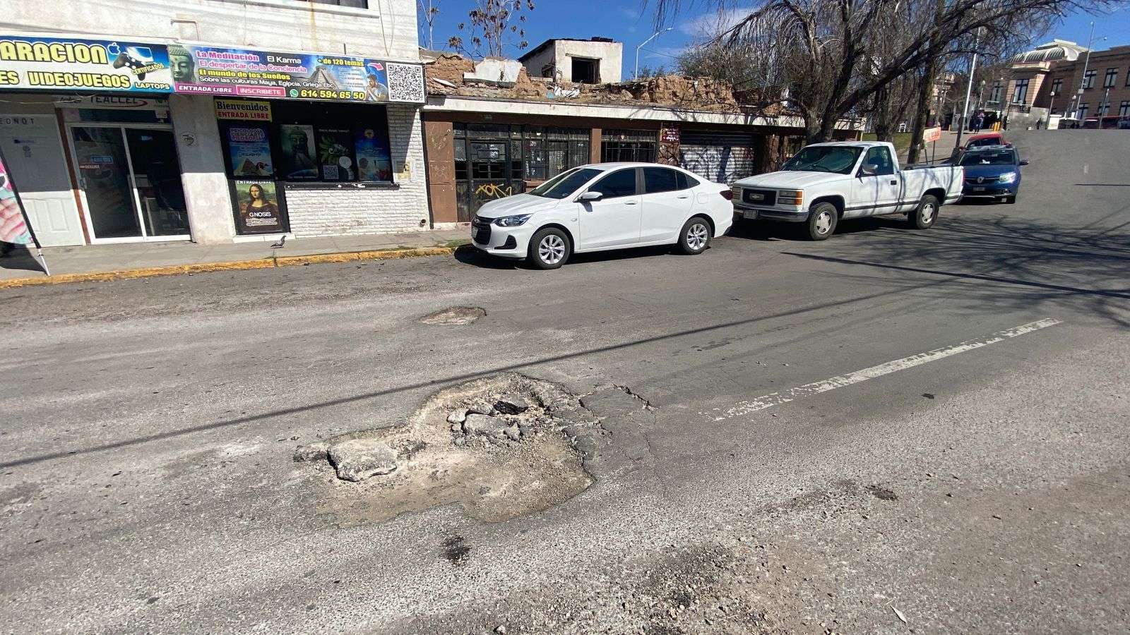 Chihuahua.– Automovilistas y vecinos del primer cuadro de la ciudad denunciaron la presencia de tres baches de gran tamaño en la calle Josué Neri Santos, los cuales, pese a haber sido reportados en repetidas ocasiones, no han sido reparados y continúan causando afectaciones a vehículos particulares y de transporte pesado.