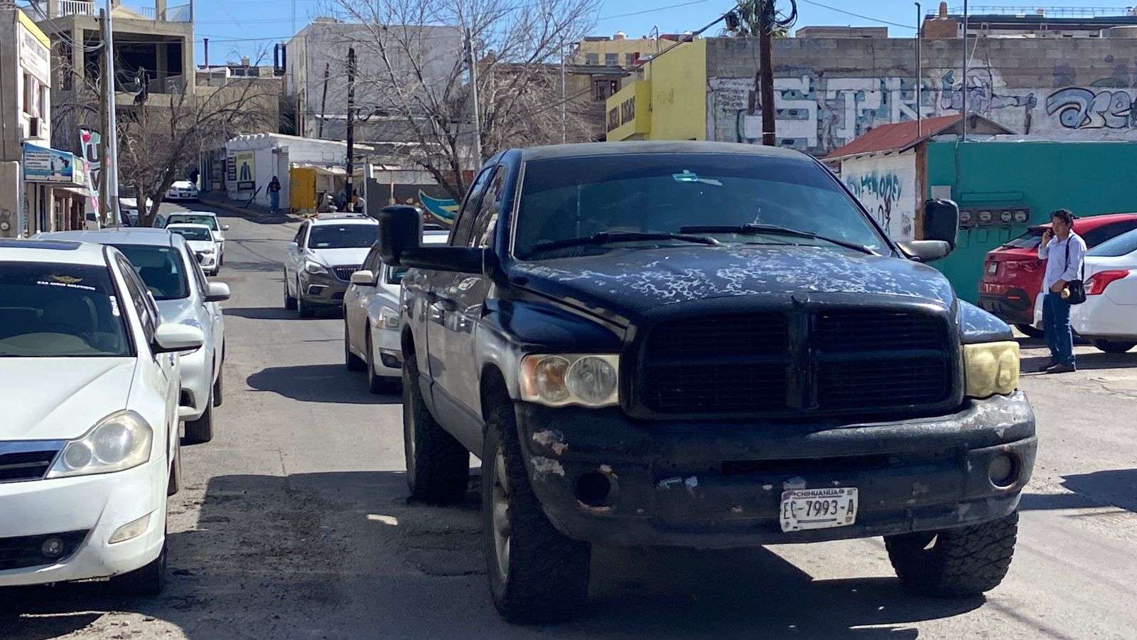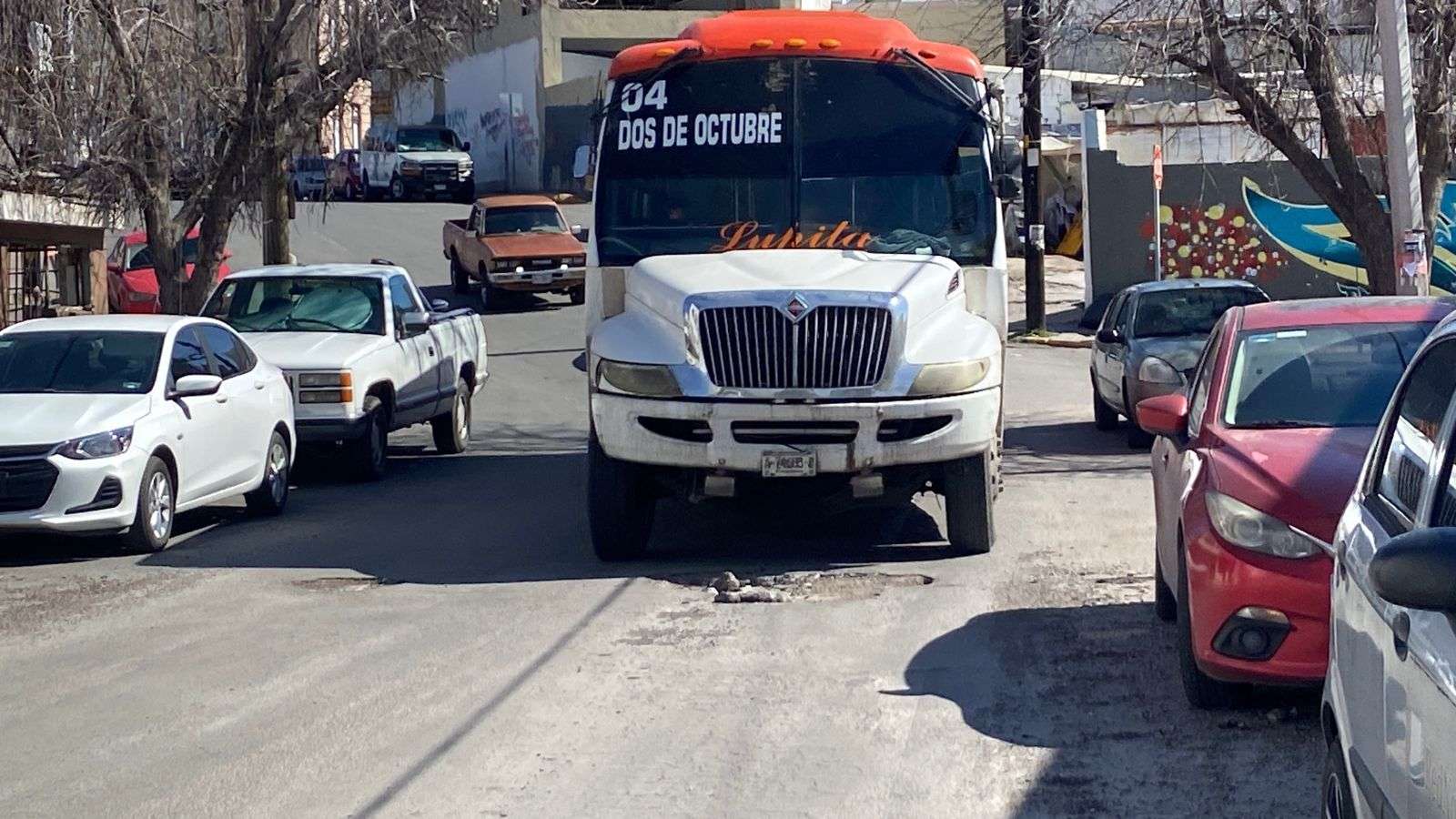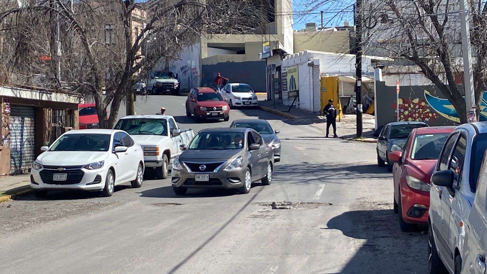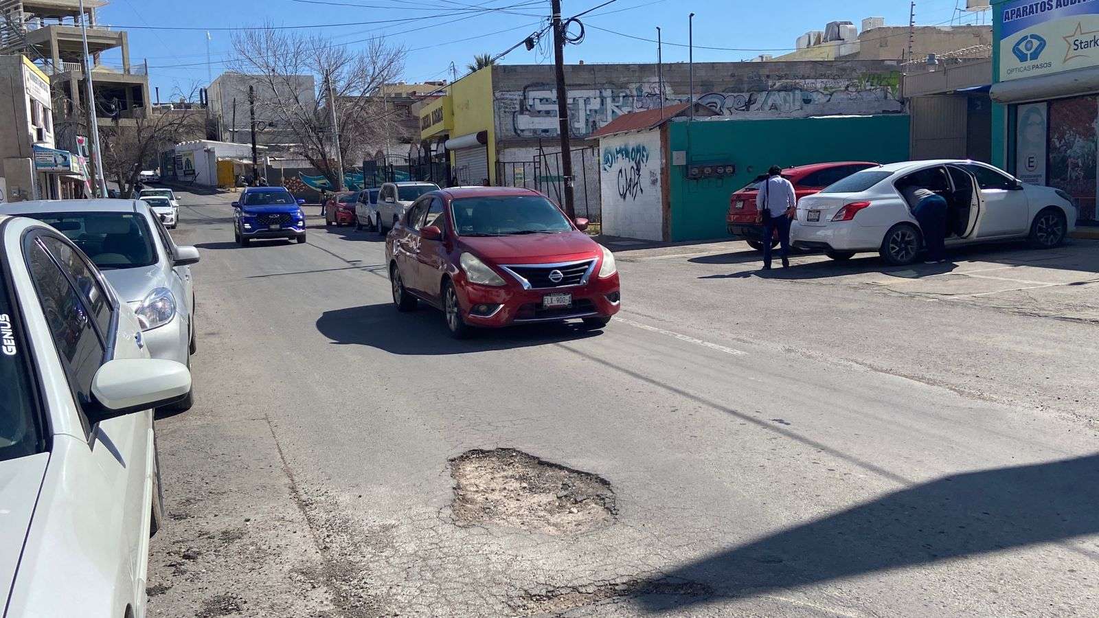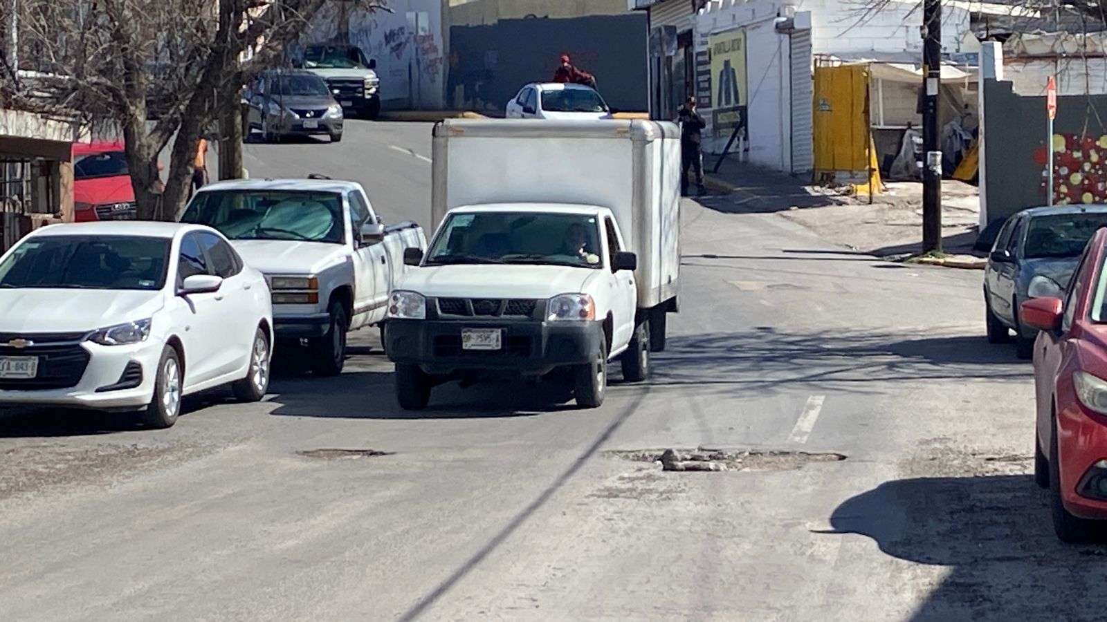 Chihuahua.– Automovilistas y vecinos del primer cuadro de la ciudad denunciaron la presencia de tres baches de gran tamaño en la calle Josué Neri Santos, los cuales, pese a haber sido reportados en repetidas ocasiones, no han sido reparados y continúan causando afectaciones a vehículos particulares y de transporte pesado.