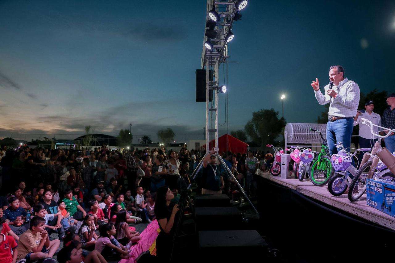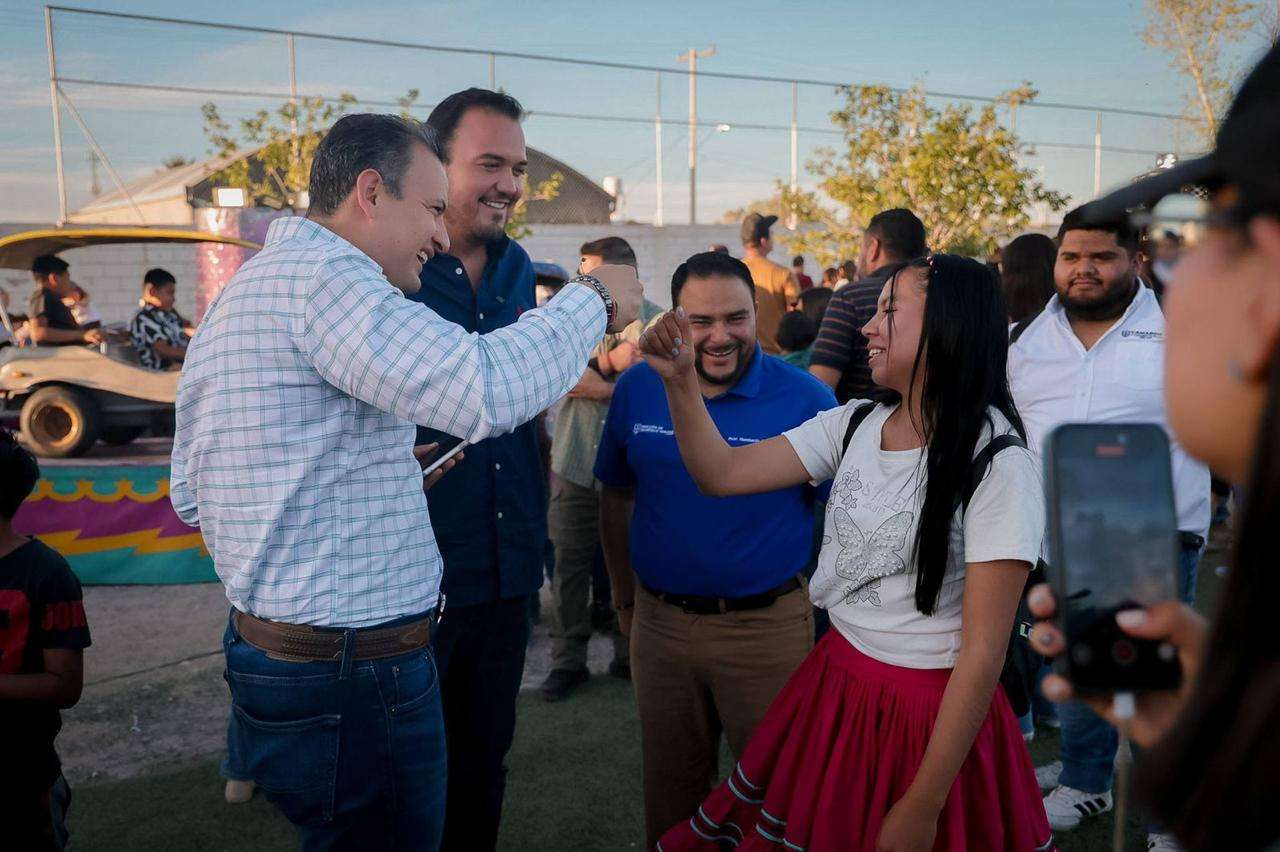 Camargo, Chih. — Como parte de su gira de trabajo por los municipios de Aldama, Saucillo y Camargo, el alcalde de Chihuahua, Marco Bonilla, atendió la invitación del alcalde Jorge Aldana para participar en el Mega Festival de la Niñez, un evento que reunió a más de 2 mil 500 camarguenses en el campo de futbol de la colonia Revolución.