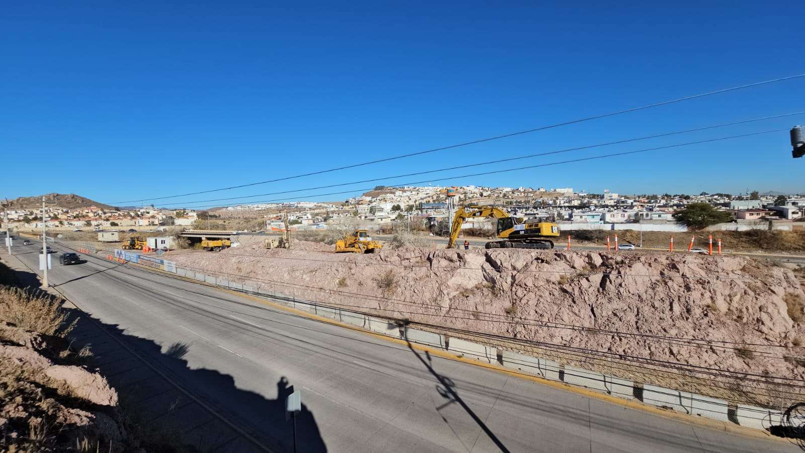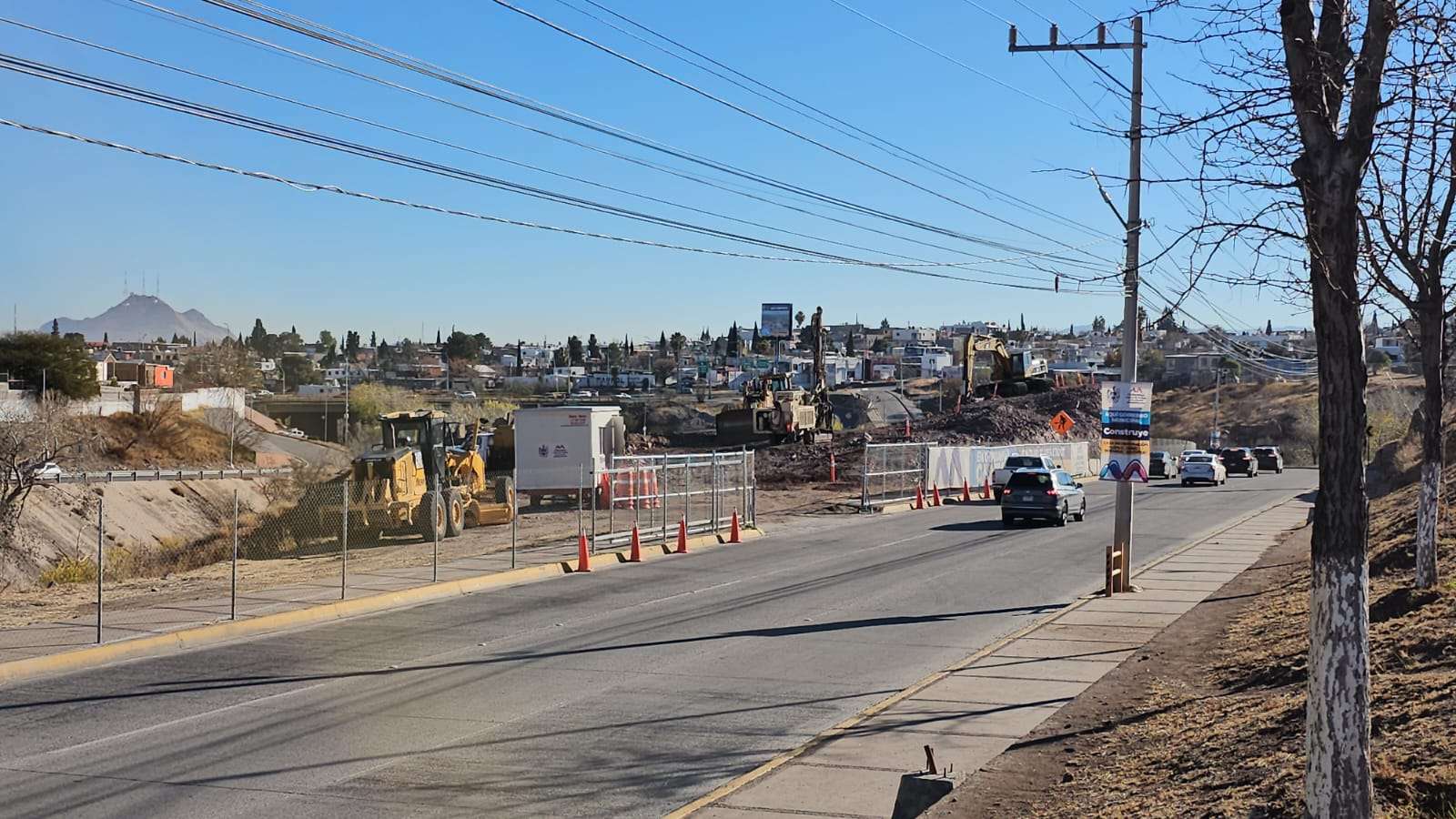 Por último, el puente con tirantes que se construye sobre la prolongación Teófilo Borunda hacia el Periférico de la Juventud presenta un avance más lento, probablemente debido a la dificultad del terreno, que es rocoso. Actualmente, se encuentra maquinaria pesada trabajando para preparar el terreno y construir las columnas del puente.