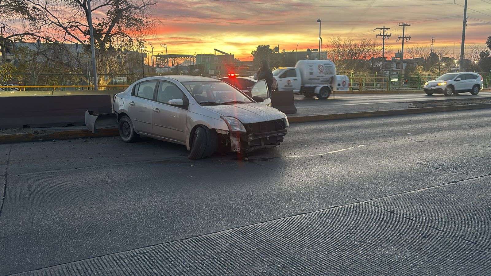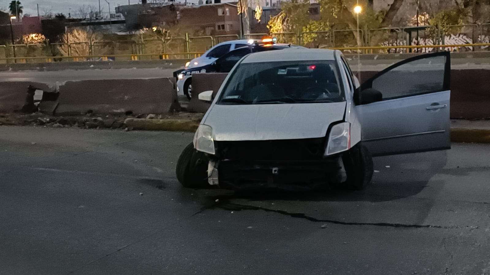 Chihuahua.- La conductora de un automóvil Nissan Sentra, color gris, circulaba a exceso de velocidad sobre la avenida la Cantera, lo que ocasionó que perdiera el control del vehículo y se impactara contra el muro de contención al descender del puente que cruza la avenida Río de Janeiro.
