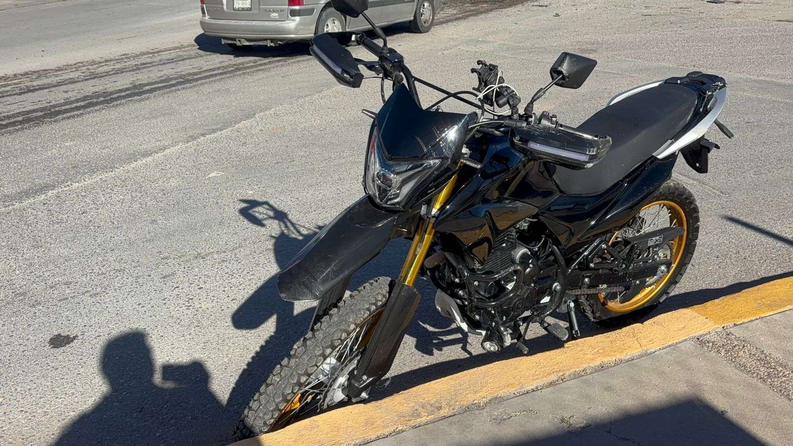 Chihuahua, Chih.– El conductor de una motocicleta se impactó contra una camioneta Jeep Liberty que se encontraba en espera de incorporarse al periférico R. Almada.