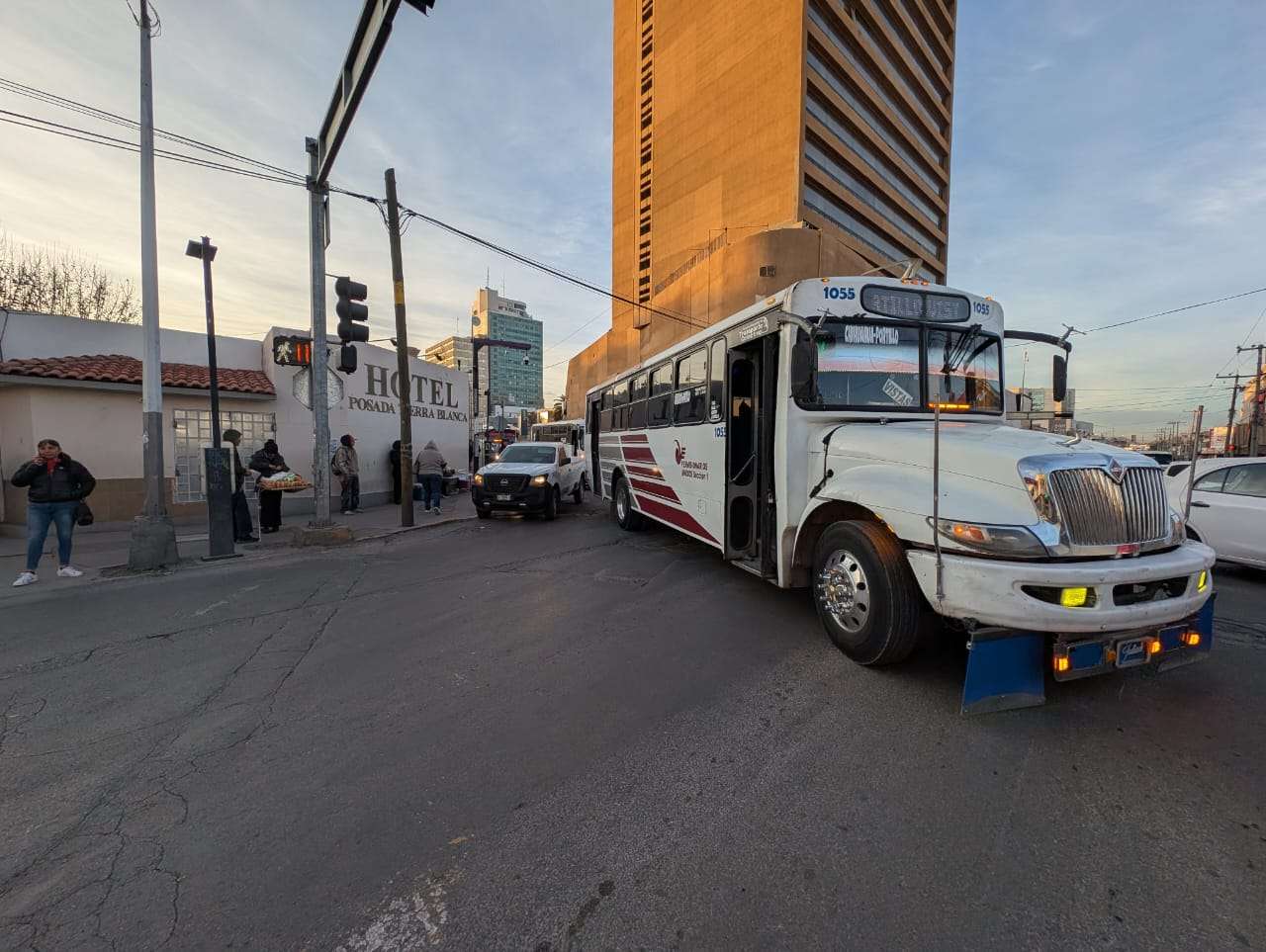 Chihuahua.- Un accidente vial entre un camión urbano de la ruta Chihuahua–Portillo y un vehículo Nissan Tiida se registró en la Zona Centro, lo que provocó congestionamiento vehicular en el área, sin que se reportaran personas lesionadas.