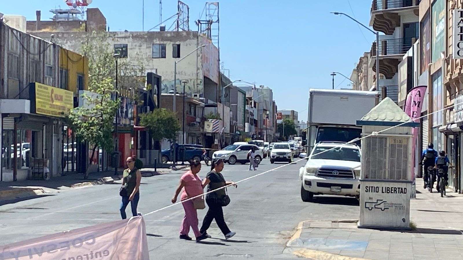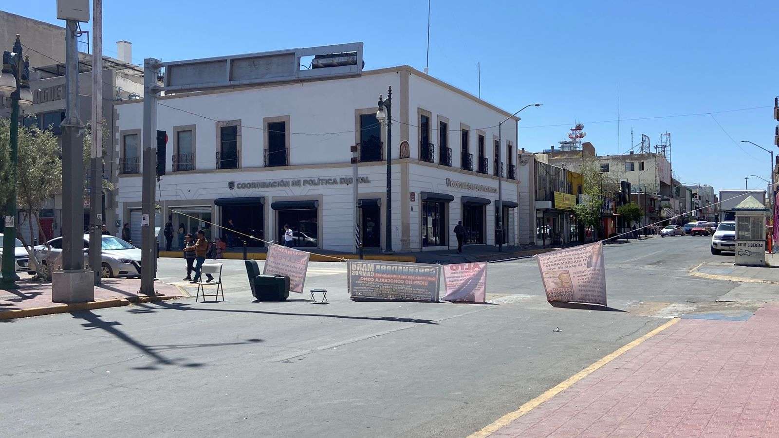 Chihuahua.- Por tercer día consecutivo, la señora Virginia Márquez y habitantes de la colonia Ladrilleros cerraron las calles del primer cuadro del centro como medida de protesta por la escasez de medicamentos en el sistema Medichihuahua.