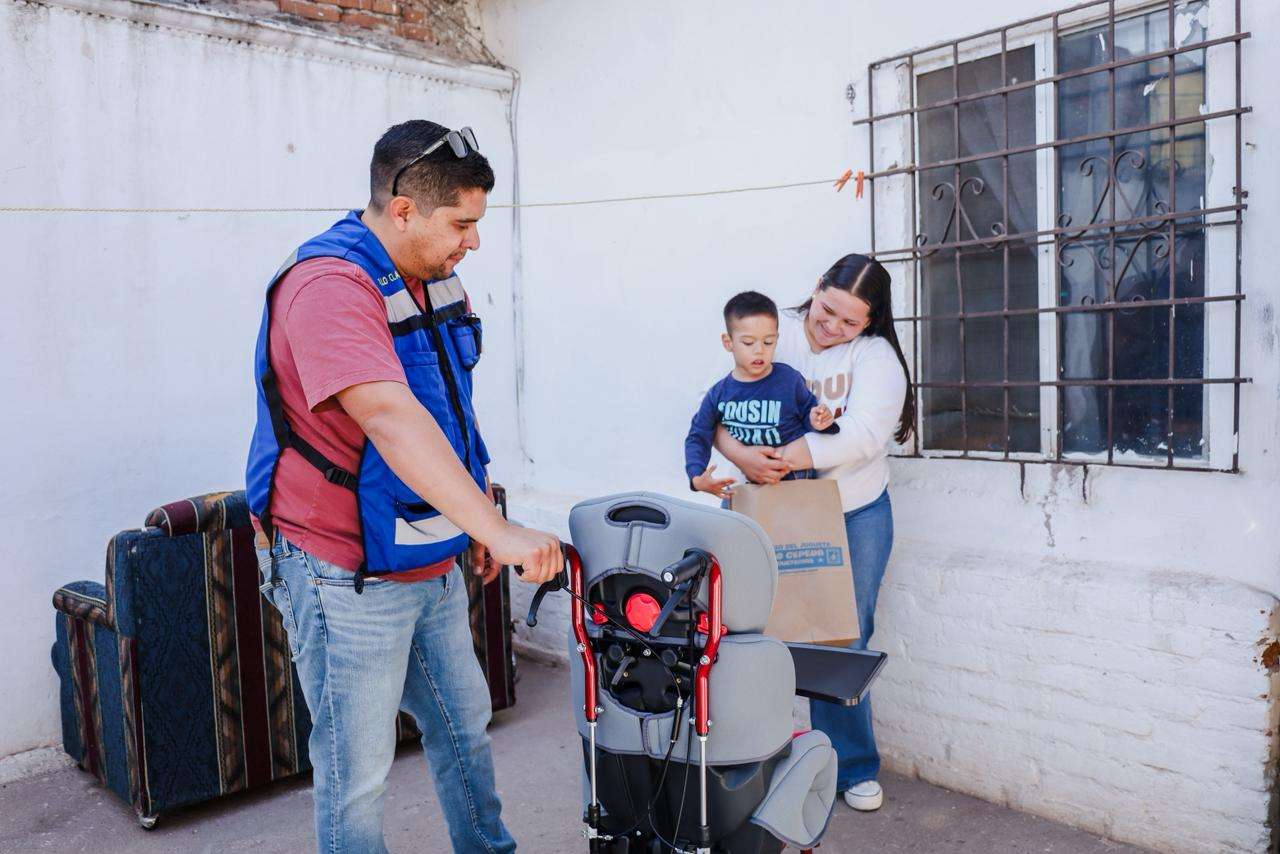 Chihuahua.- Como parte de la solidaridad con niñas y niños, el DIF Municipal, entregó una silla de ruedas especializada a Erik, niño con diagnóstico de parálisis cerebral infantil (PCI), para apoyarlo a que tenga una mejor calidad de vida, y apoyar a su mamá al facilitar su traslado, cuidado diario y mejorar significativamente sus condiciones cotidianas.