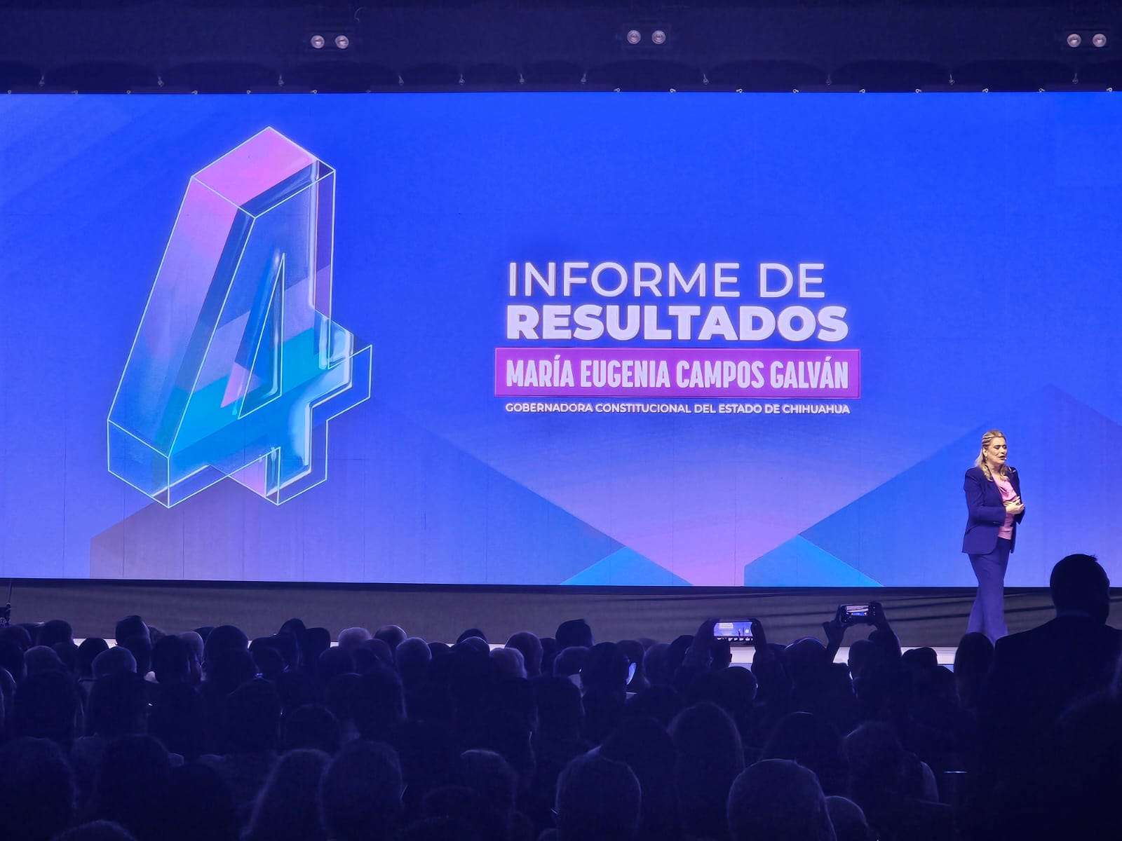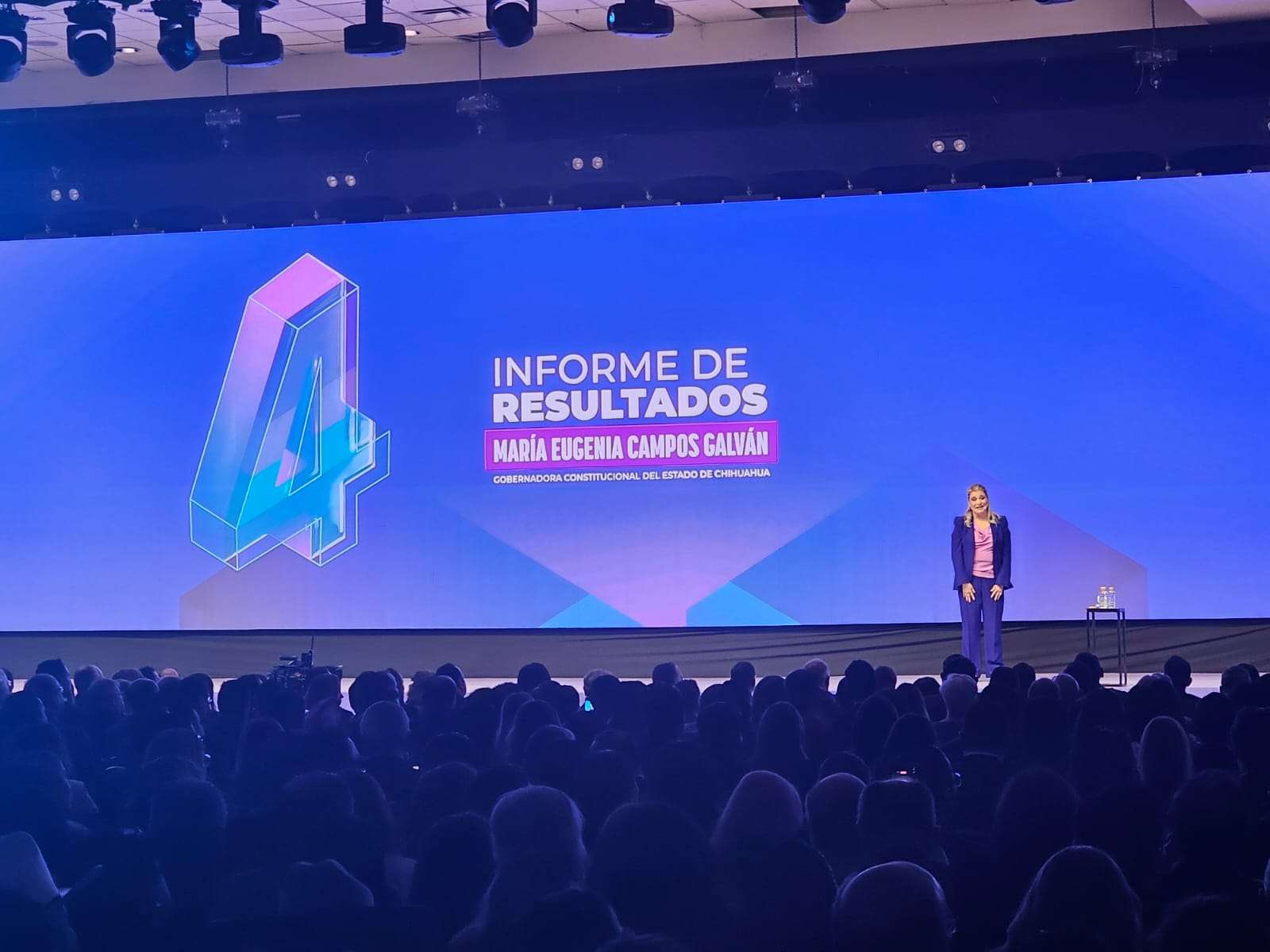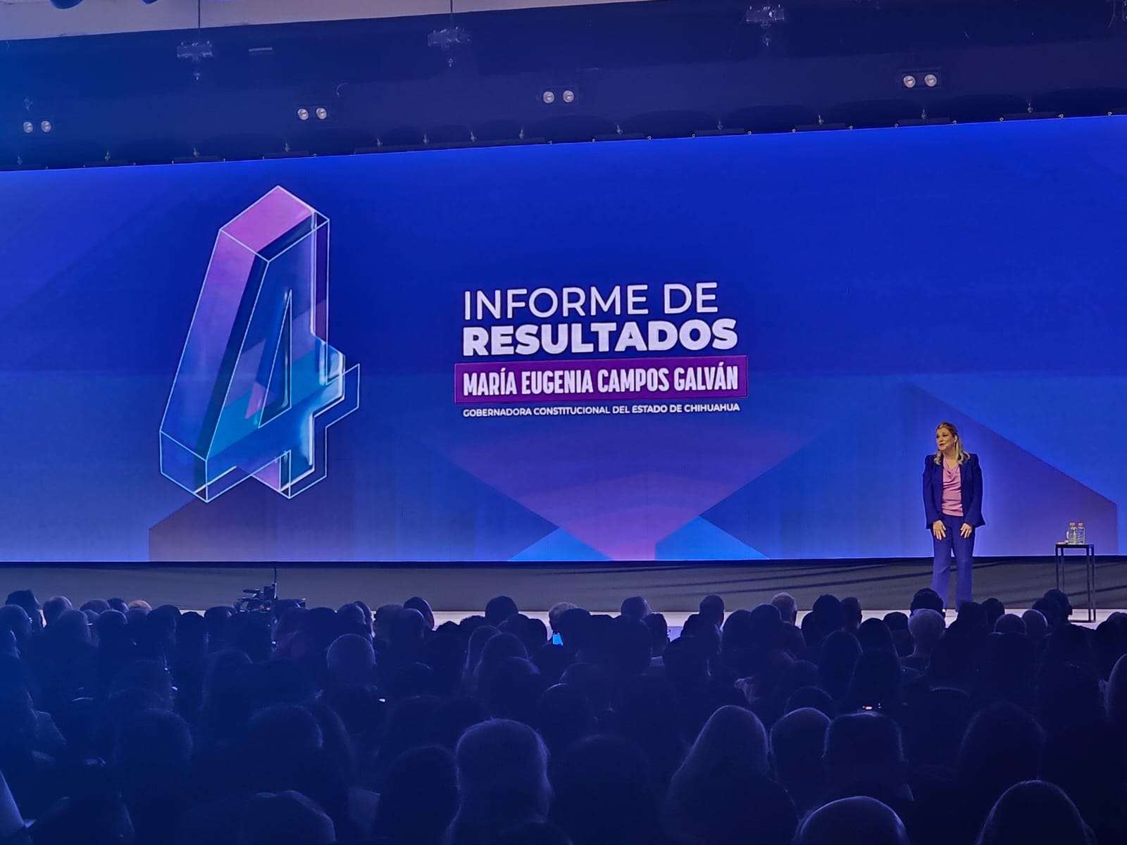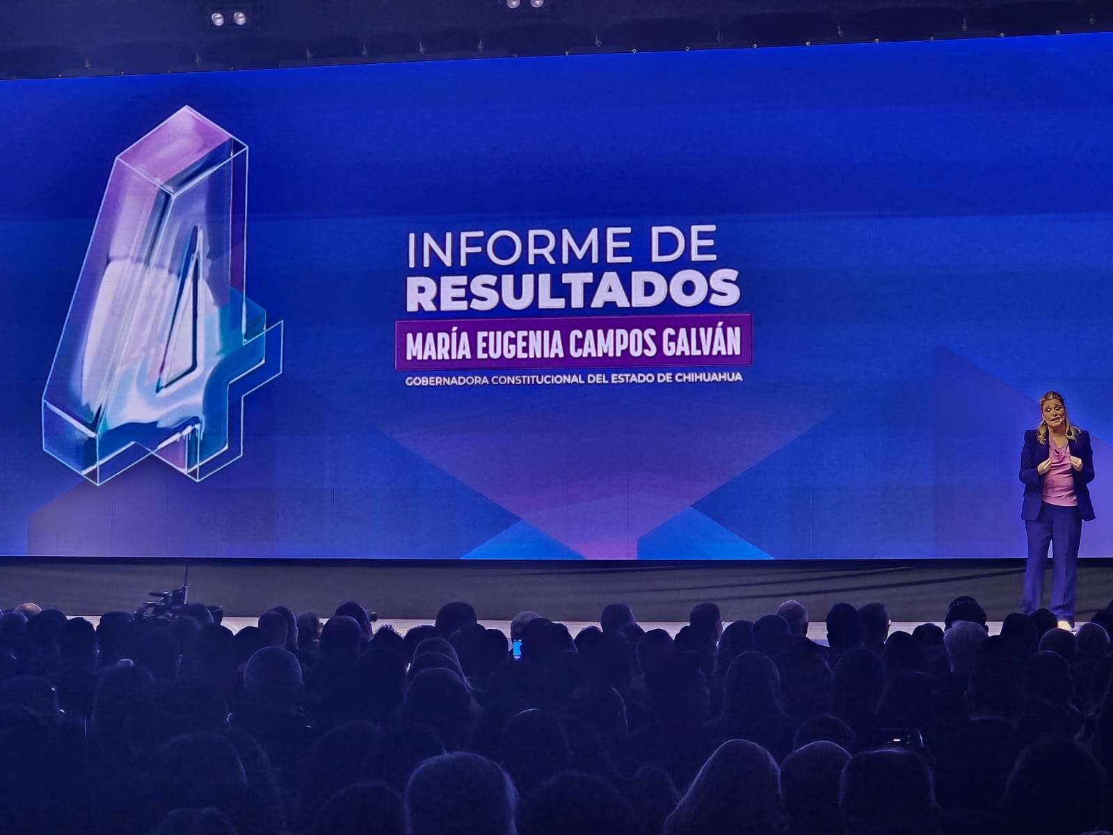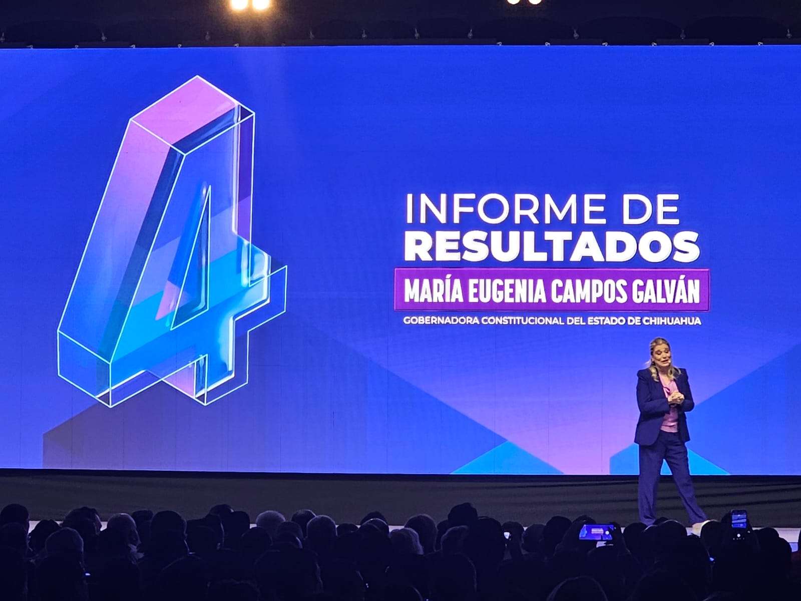 Chihuahua.– Esta mañana inició la presentación oficial del Cuarto Informe de Gobierno de la administración encabezada por la gobernadora María Eugenia Campos Galván.