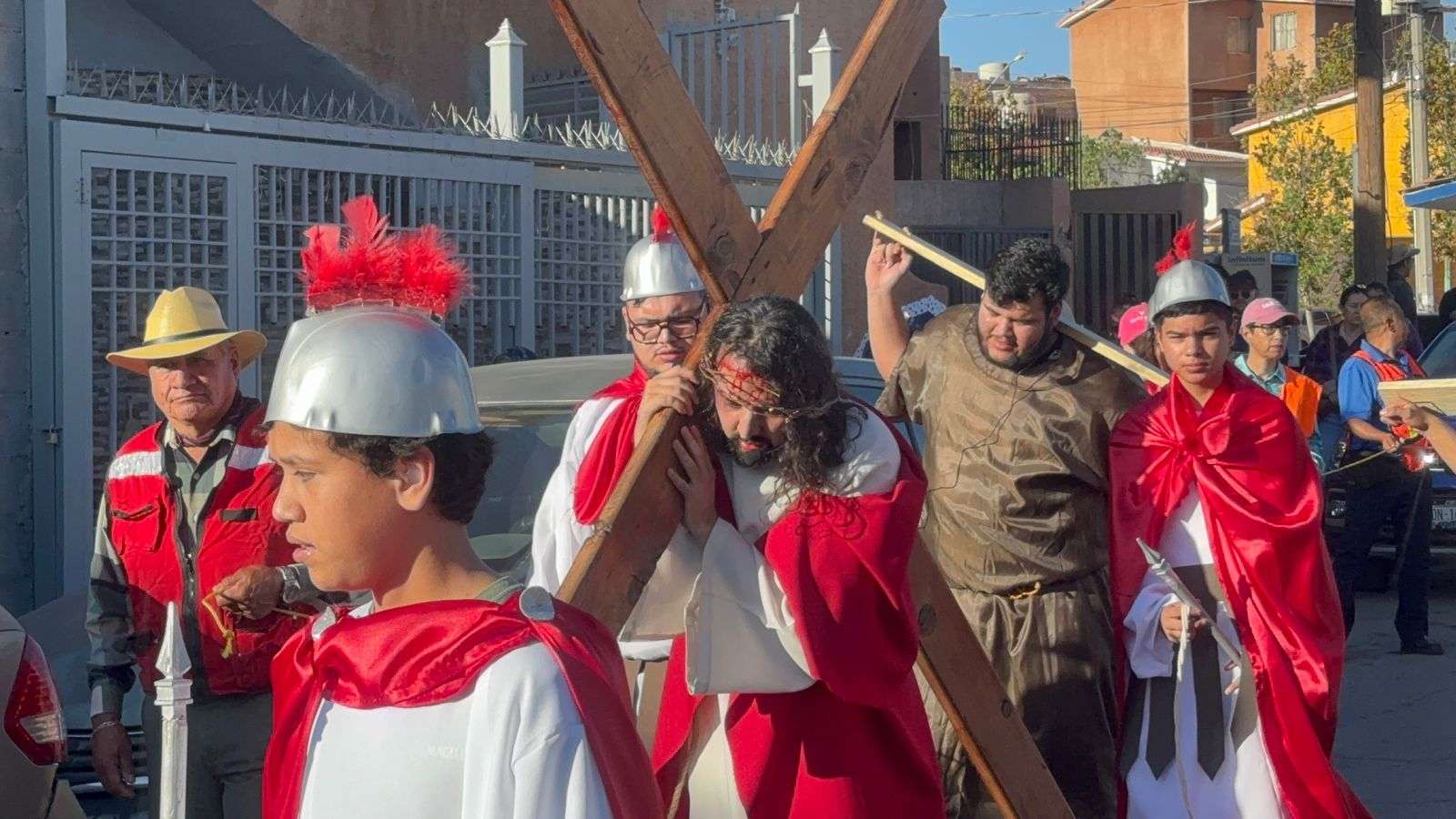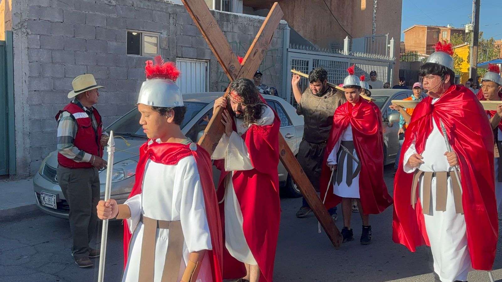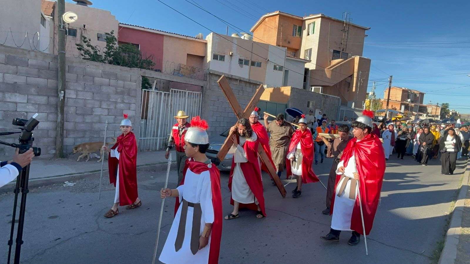 Chihuahua. - En la parroquia de San Pablo Apóstol, ubicada en la calle Simón Sarlat Nava de Chihuahua 2000, comenzó a las 8:00 horas el Viacrucis viviente.