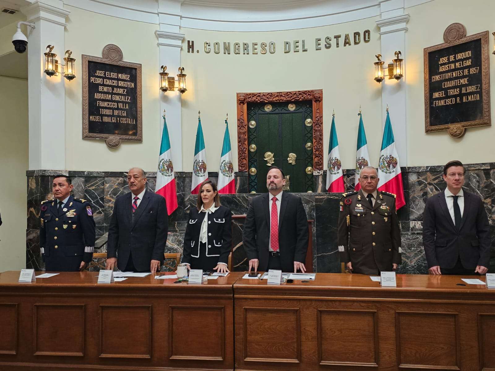 Chihuahua.- Este 5 de febrero se cumplen 109 años de la promulgación de la Constitución Política de los Estados Unidos Mexicanos, la llamada Carta Magna, que estableció los derechos y obligaciones fundamentales de los mexicanos tras la Revolución Mexicana, para conmemorar esta fecha, autoridades estatales y municipales realizaron un acto oficial.