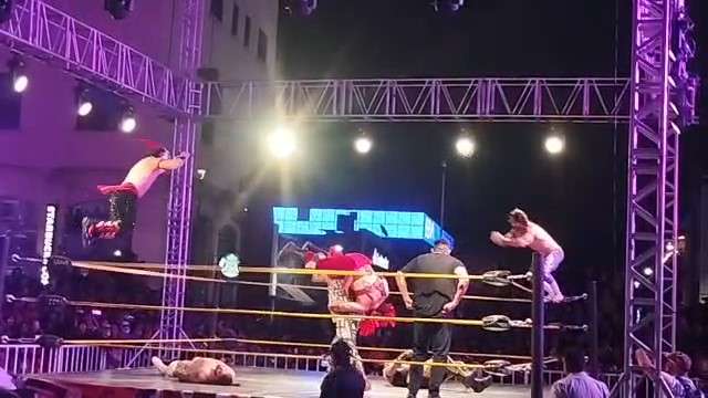 El combate mantuvo una intensidad constante; sin embargo, rumbo a la mitad del encuentro, los rudos tomaron una ventaja desleal al utilizar patadas prohibidas e incluso contar con la complicidad del réferi, quien intervino activamente agrediendo al bando técnico.