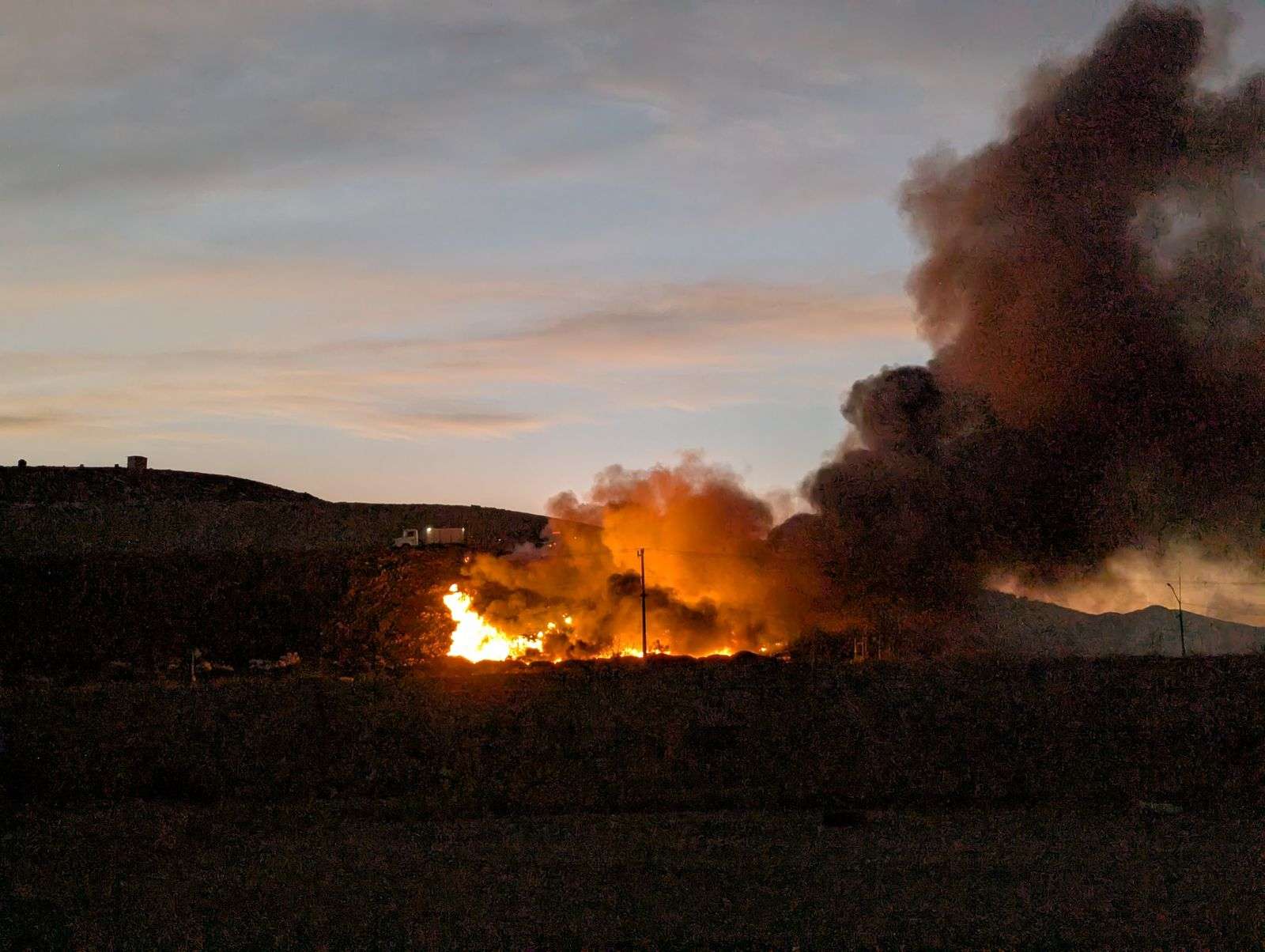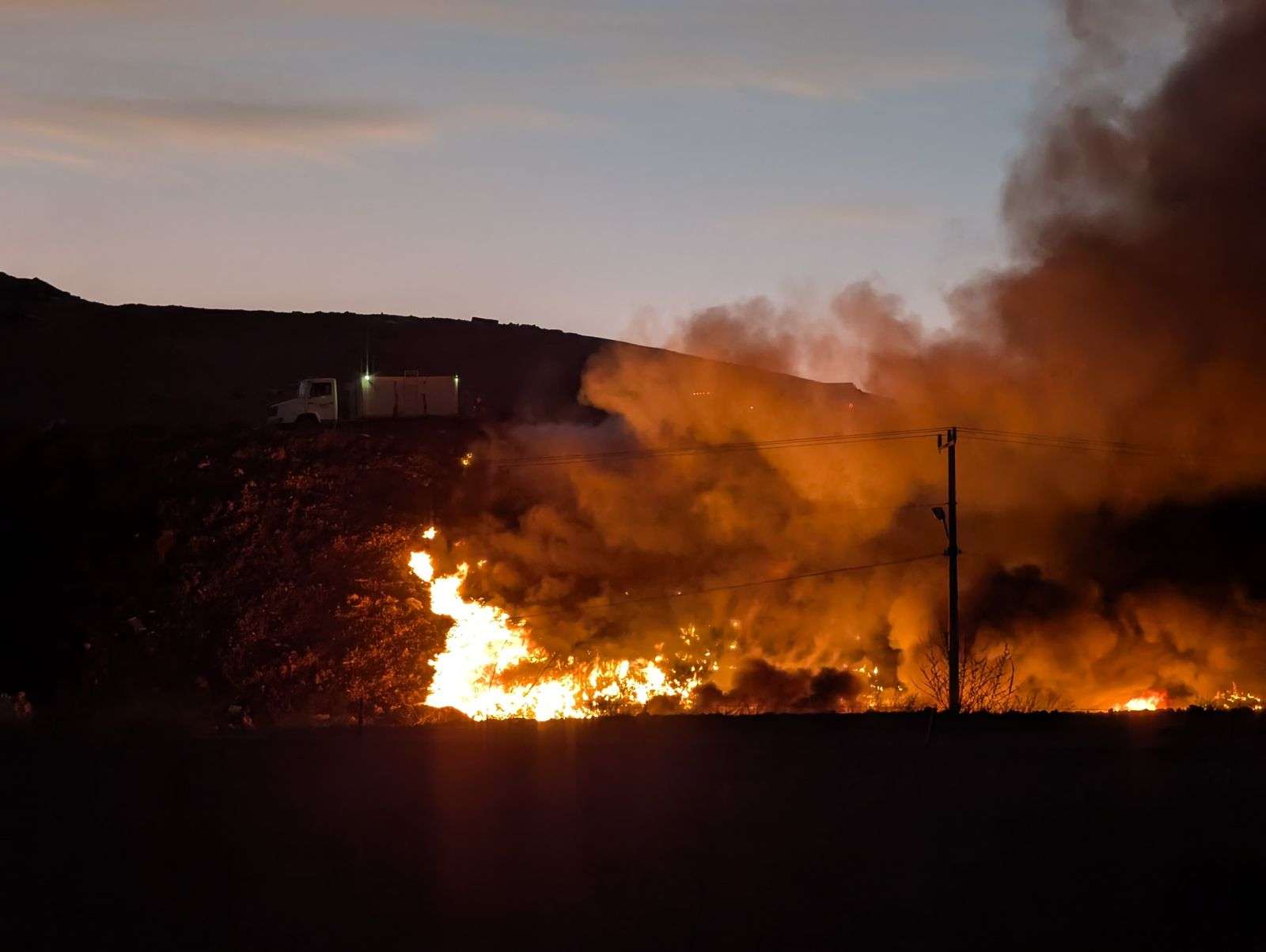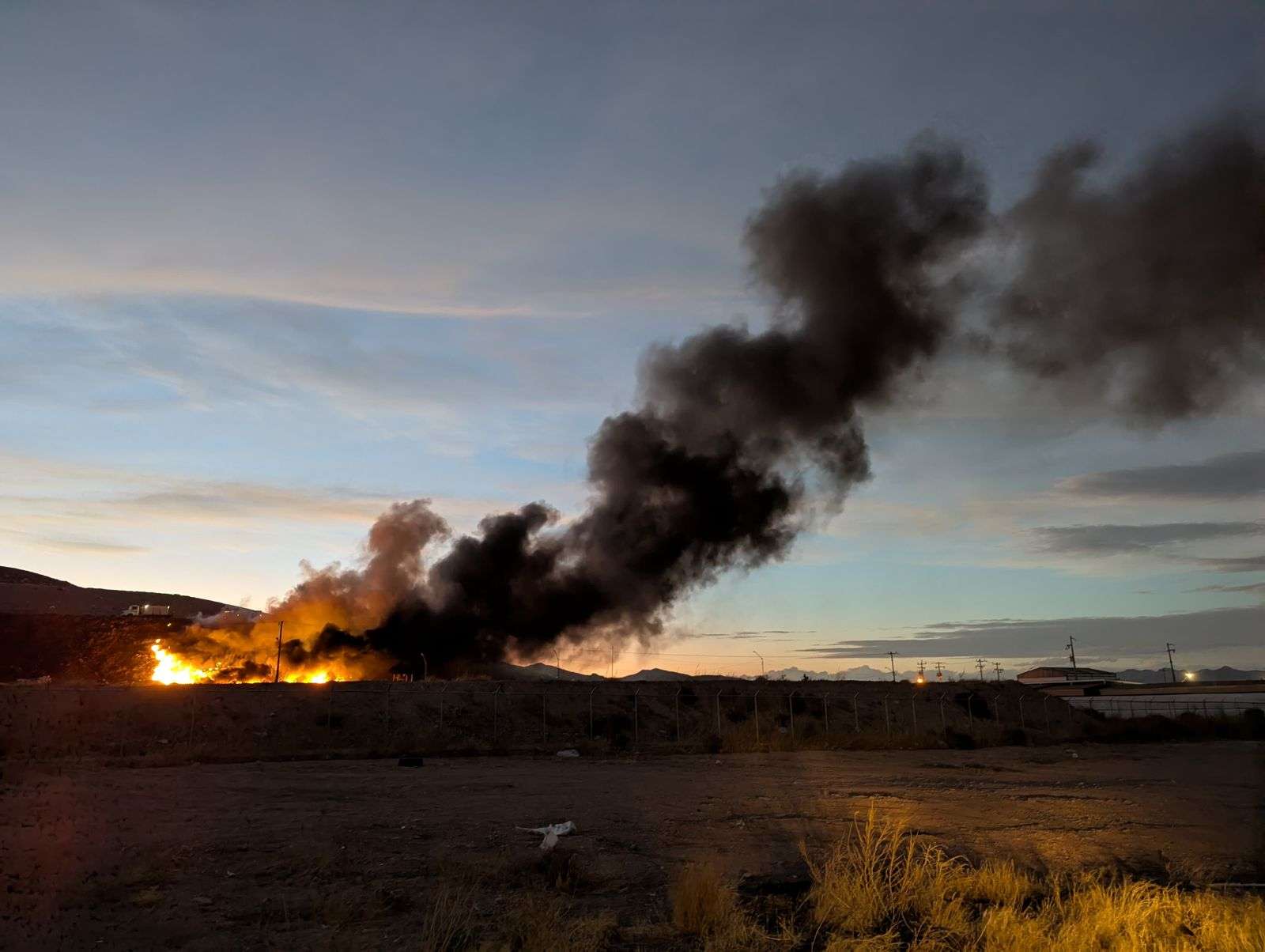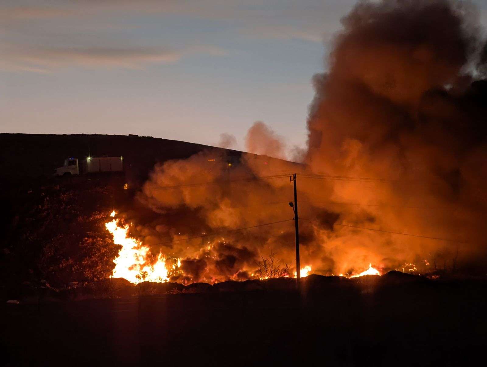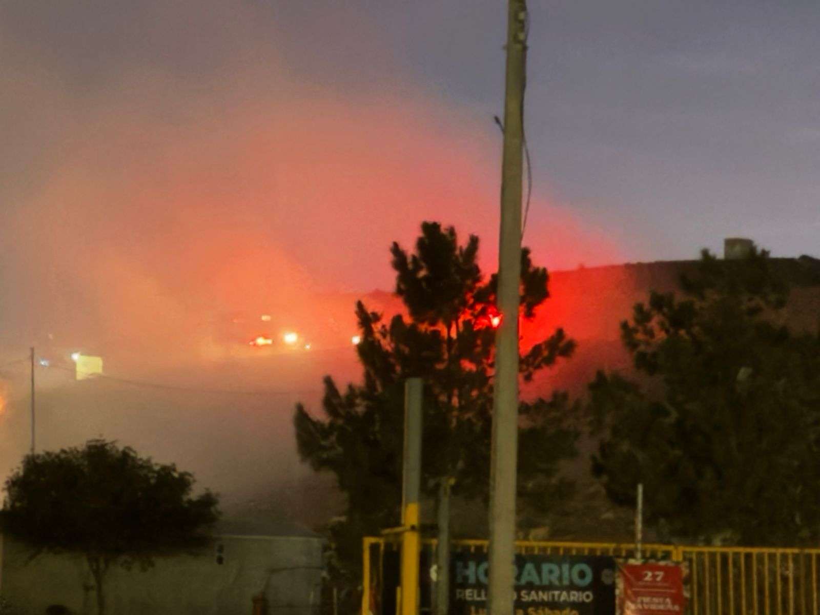 Chihuahua.- Personal de Protección Civil Municipal y agentes de la Policía Municipal se desplazaron a las instalaciones del Relleno Sanitario Municipal, tras registrarse un incendio en una sección del predio.