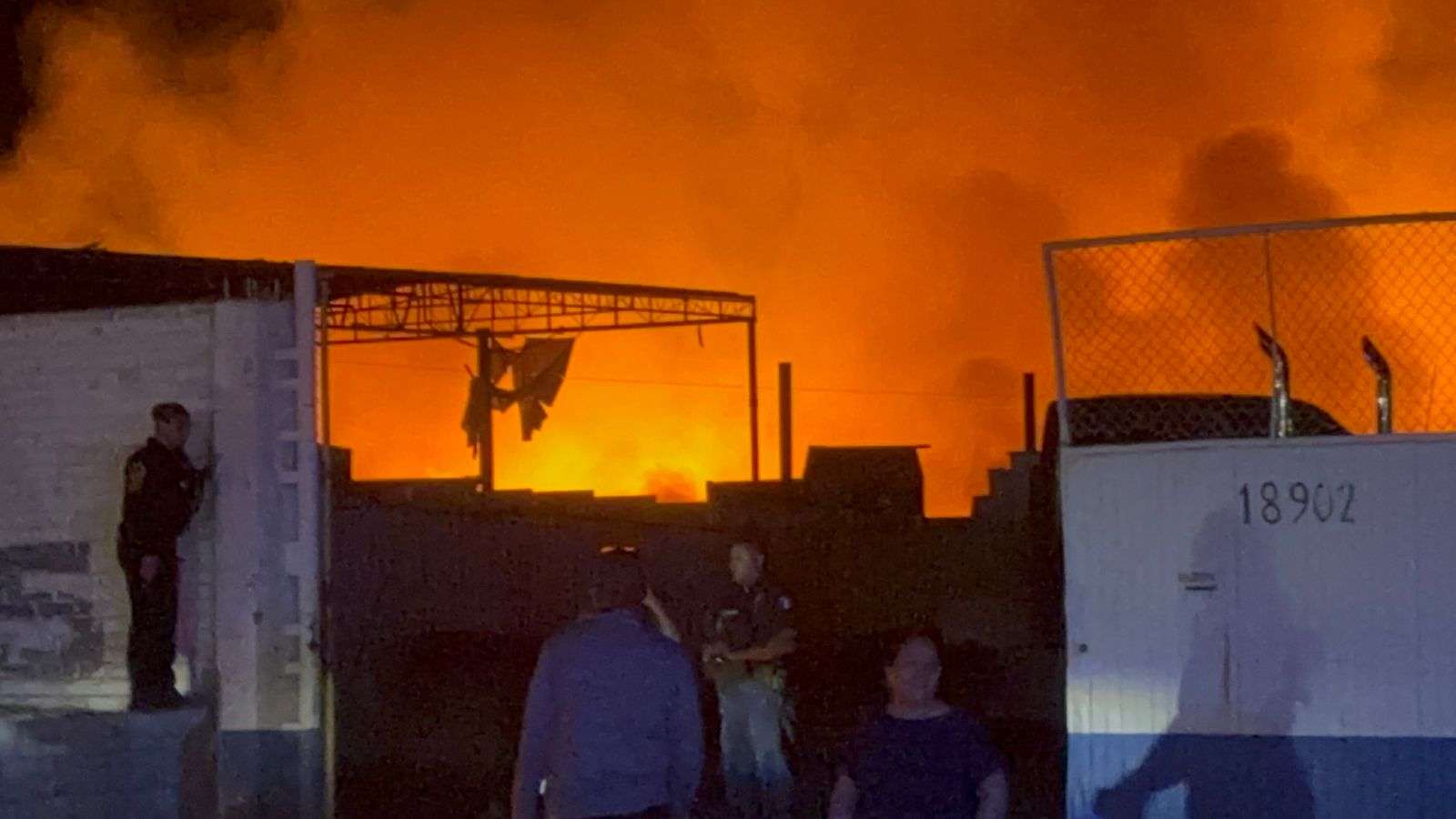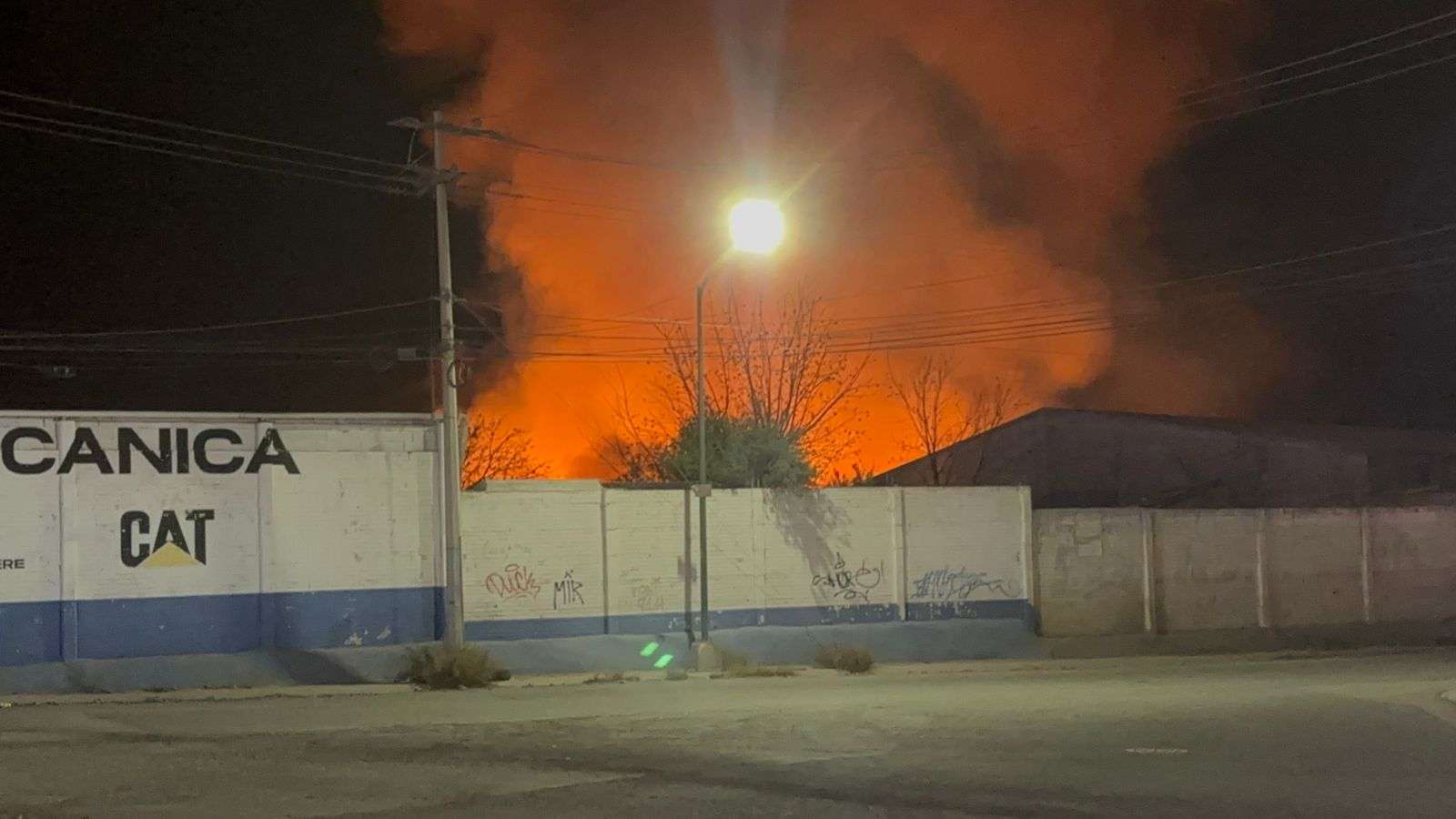 Chihuahua, Chih.- Un voraz incendio registrado la noche de este viernes consumió una fábrica de tarimas ubicada al norte de la ciudad, generando una intensa movilización de los cuerpos de emergencia ante el riesgo inminente de que las llamas alcanzaran una gasolinera contigua.