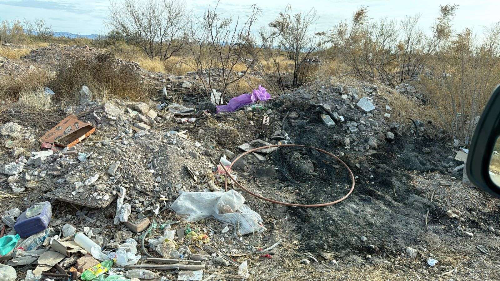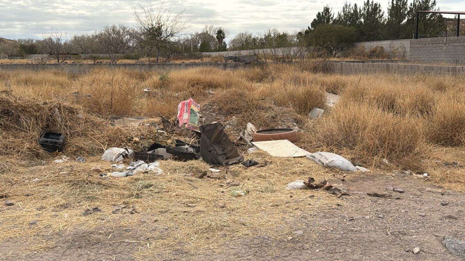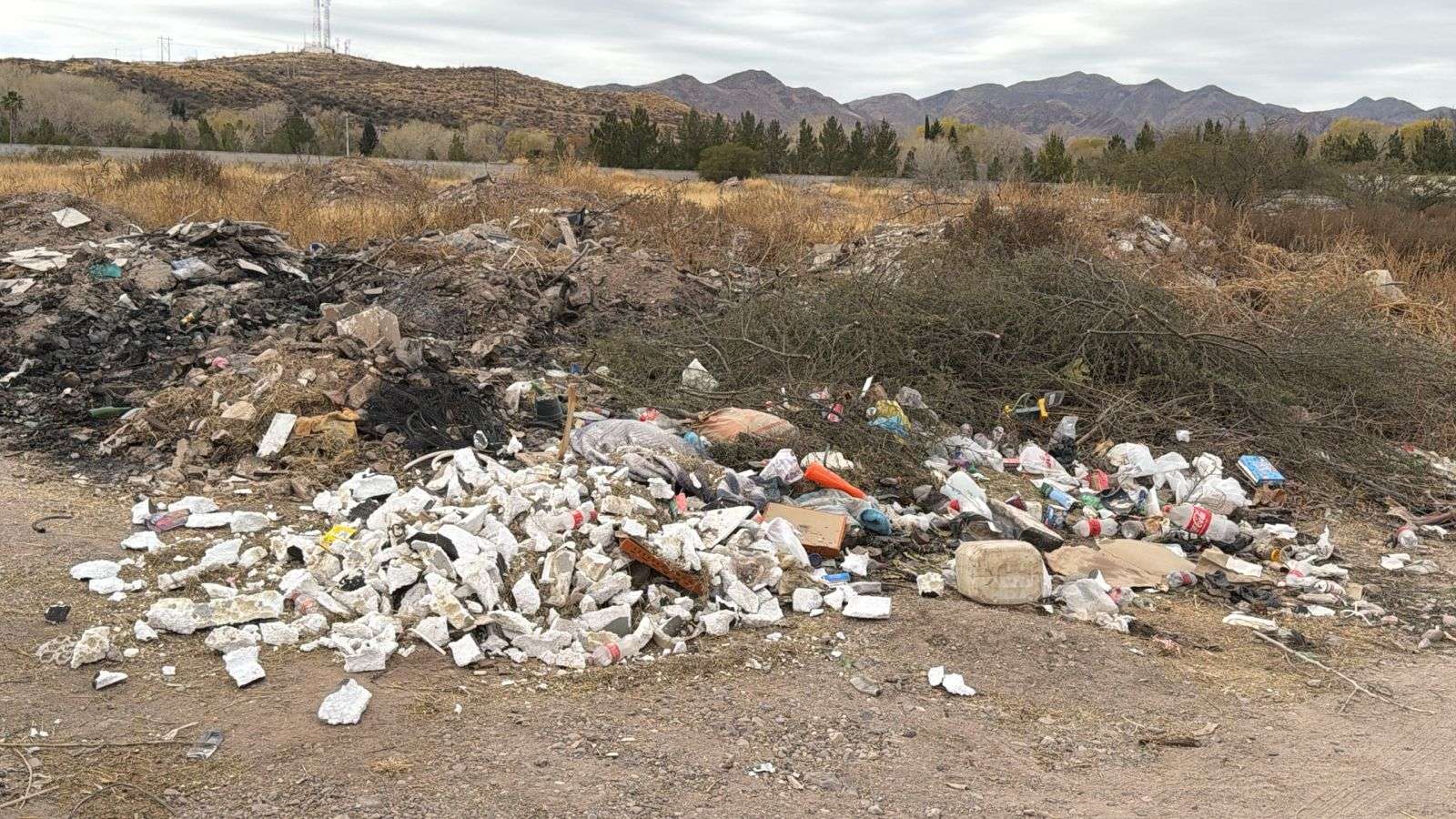 Aldama, Chih. – La entrada al Río Aldama, en el Bosque de Aldama, y la entrada a un fraccionamiento se han convertido en tiraderos de basura ante la falta de recolección por parte de la autoridad municipal. Vecinos denunciaron que la gente termina arrojando sus desechos en estos espacios ante la ausencia de servicios de recolección.