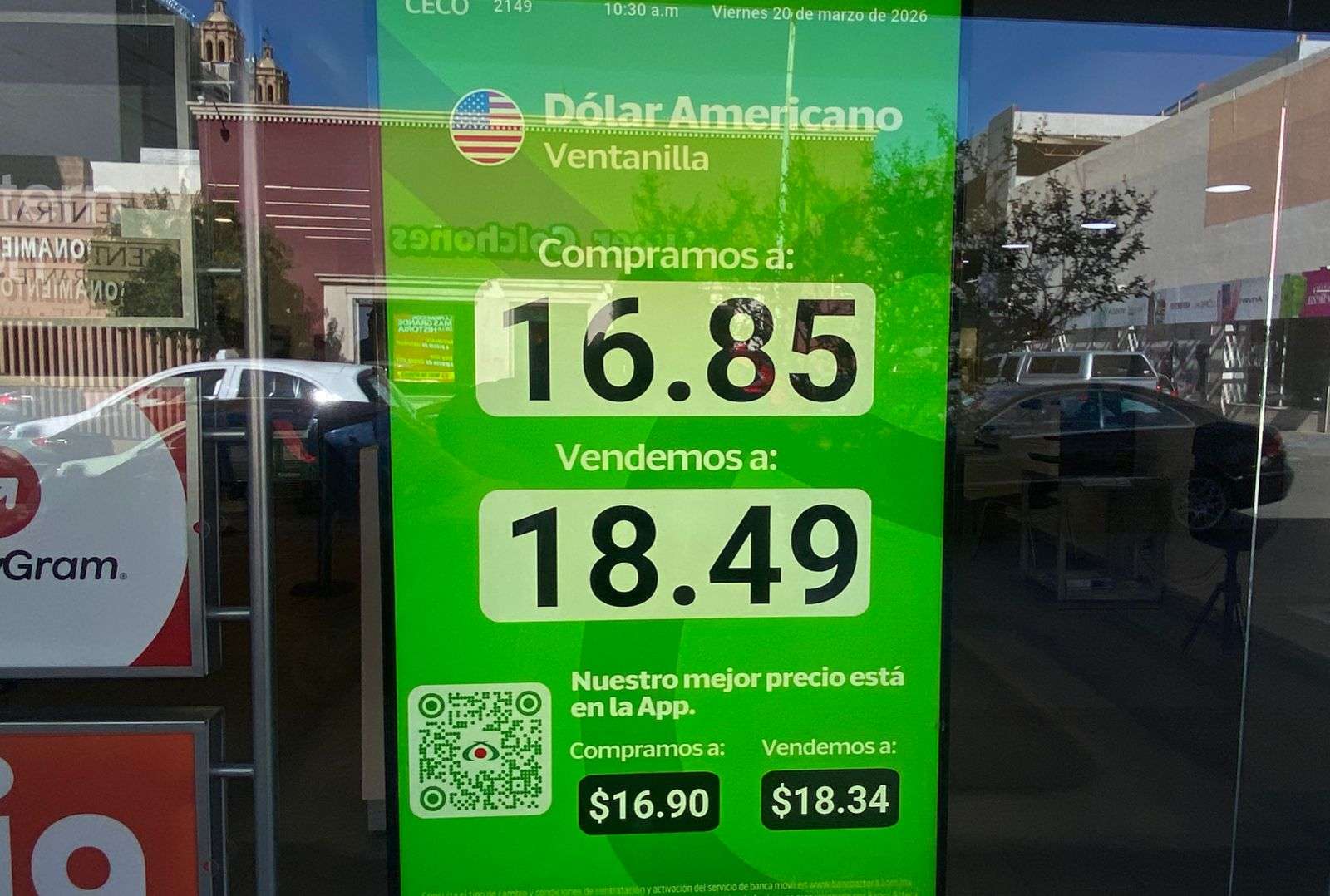 Chihuahua, Chih.- La cotización del dólar americano para este viernes 20 de marzo en las ventanillas de Banco Azteca, ubicadas en la intersección de las calles Cuarta y Aldama, se situó en $18.49 a la venta y $16.85 a la compra.