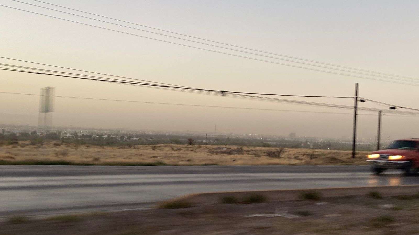 Chihuahua.- Una densa capa de contaminación se pudo apreciar en gran parte de la ciudad, desde la zona del Campus II de la UACH hasta el sur de la capital.