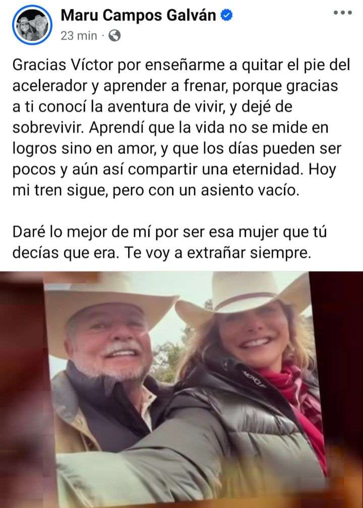 El mensaje con el que despidió a su esposo, Don Víctor Cruz Russek, acompañado de videos y fotografías de su día a día, rinde homenaje a su memoria y dice lo siguiente: