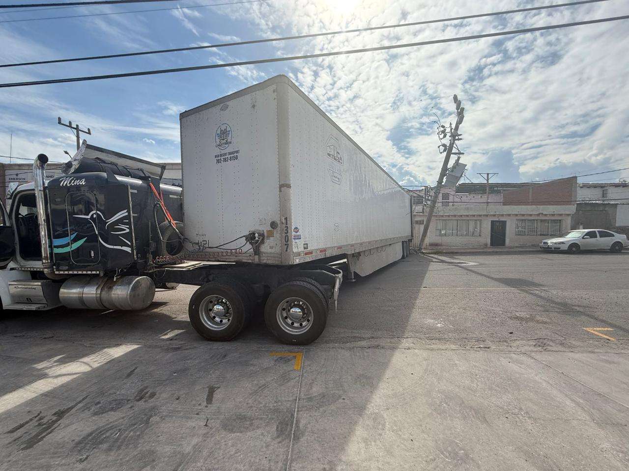Afortunadamente, el material que transportaba el tráiler para la empresa Refrigeración Lozano ya había sido descargado en su totalidad antes del incidente.