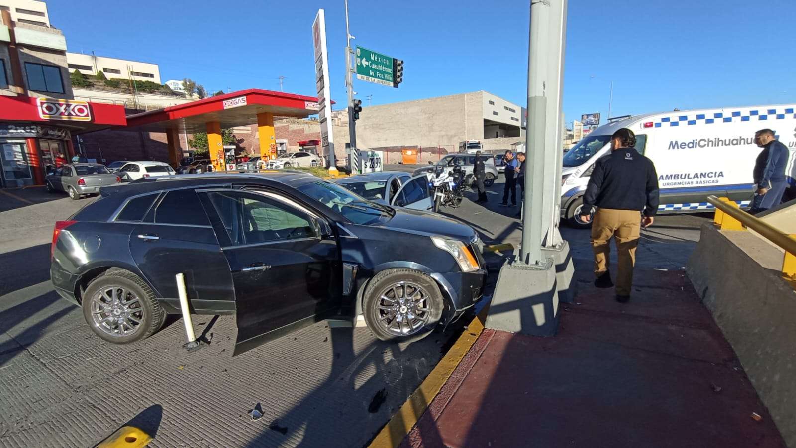 De acuerdo con el reporte preliminar, el conductor de la camioneta salía de la gasolinera Oxxo Gas ubicada en el sector y trató de cruzar la lateral para incorporarse a la avenida Juan Escutia con rumbo al este. Sin embargo, al no existir semáforo en ese punto que regulara la maniobra, invadió la circulación.