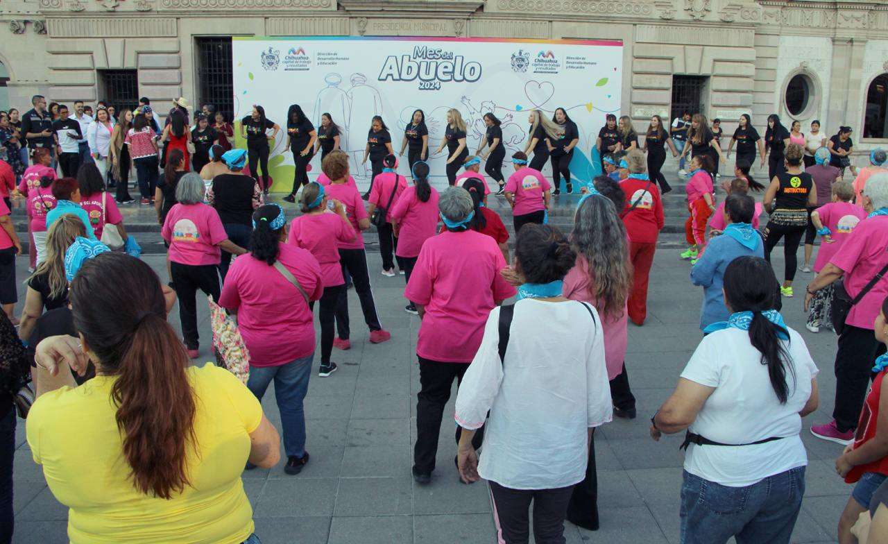 Chihuahua.- El Gobierno Municipal de Chihuahua, a través de la Dirección de Desarrollo Humano y Educación, inició las actividades del “Mes del Abuelo 2024”, con la participación de cientos de abuelitos de la capital, que se dieron cita en la Plaza de Armas para el Concurso de Baile.