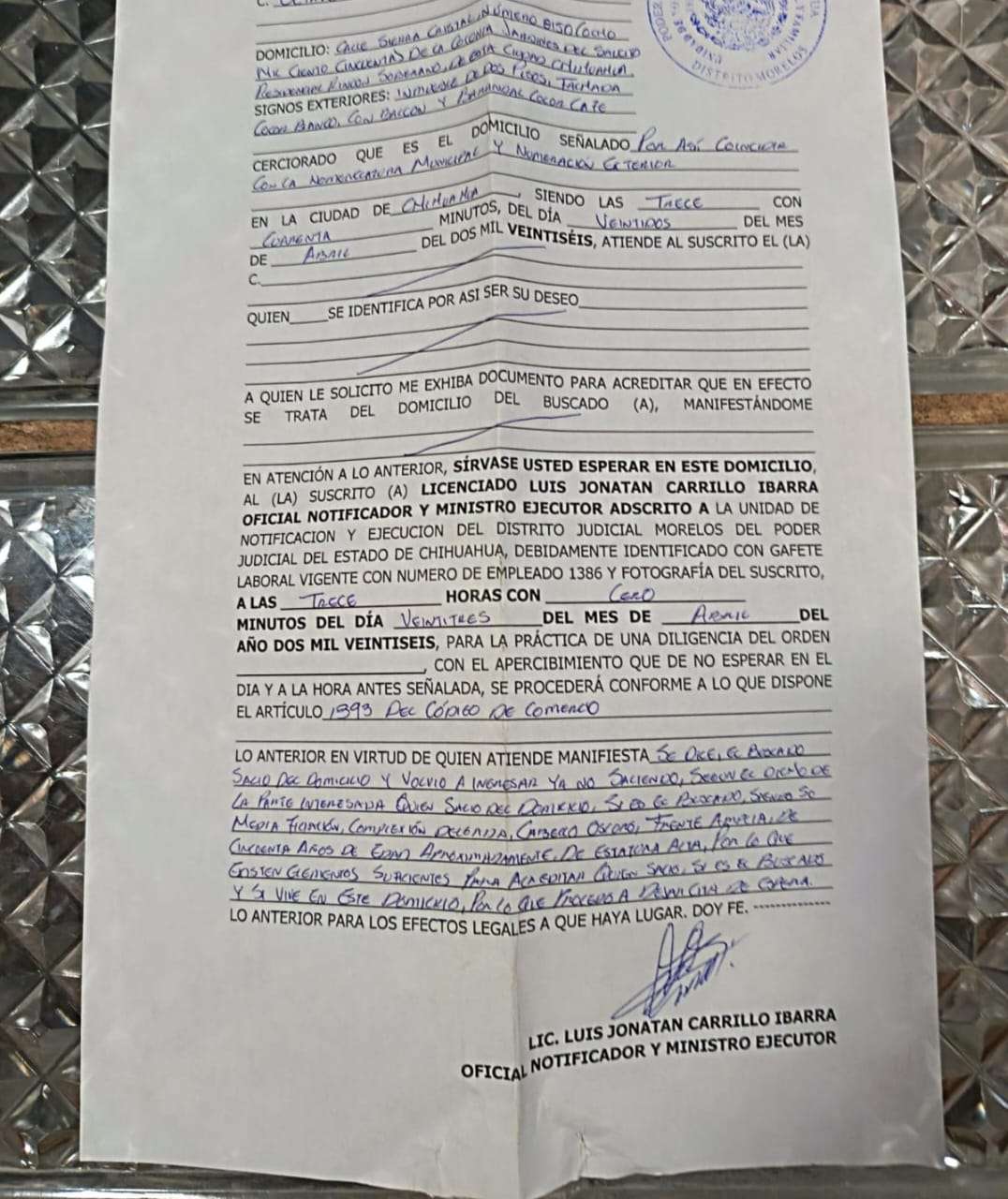 Chihuahua.— El pasado 22 de abril, vecinos de un fraccionamiento privado al norte de la ciudad reportaron un incidente durante una supuesta notificación mercantil que derivó en acusaciones de intimidación y daños materiales.