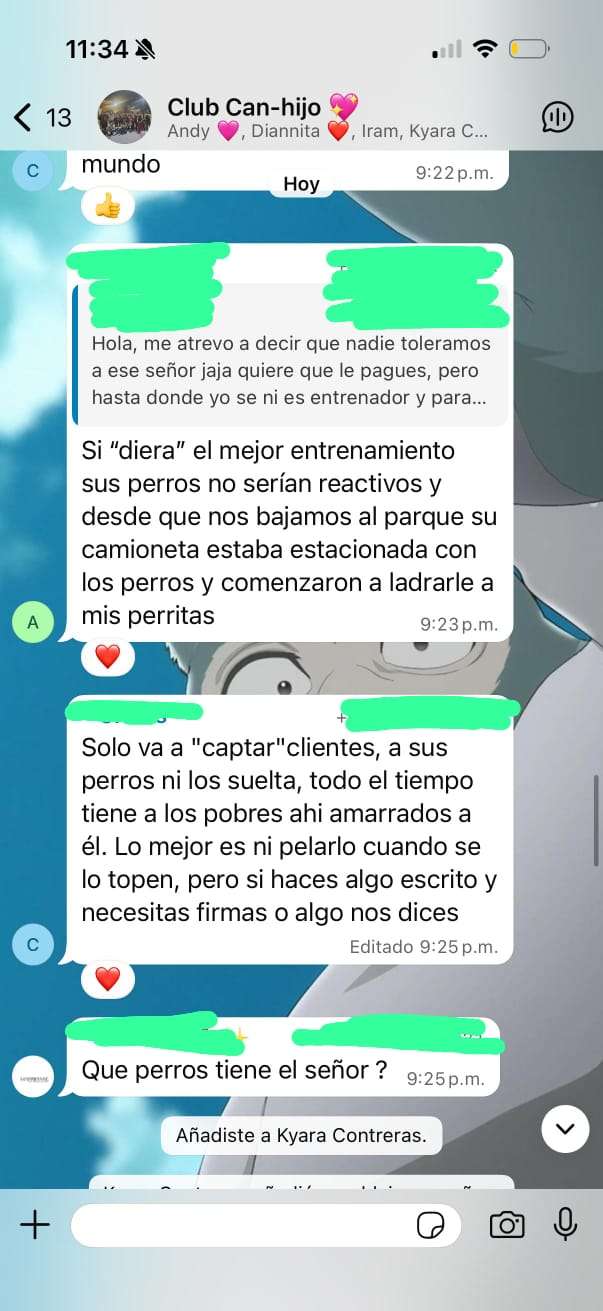 Este incidente no es un hecho aislado. Miembros de la comunidad que frecuentan el parque han manifestado, a través de grupos de mensajería instantánea, que este sujeto suele hostigar a los dueños con el objetivo de coaccionarlos para que paguen por sus servicios de entrenamiento.