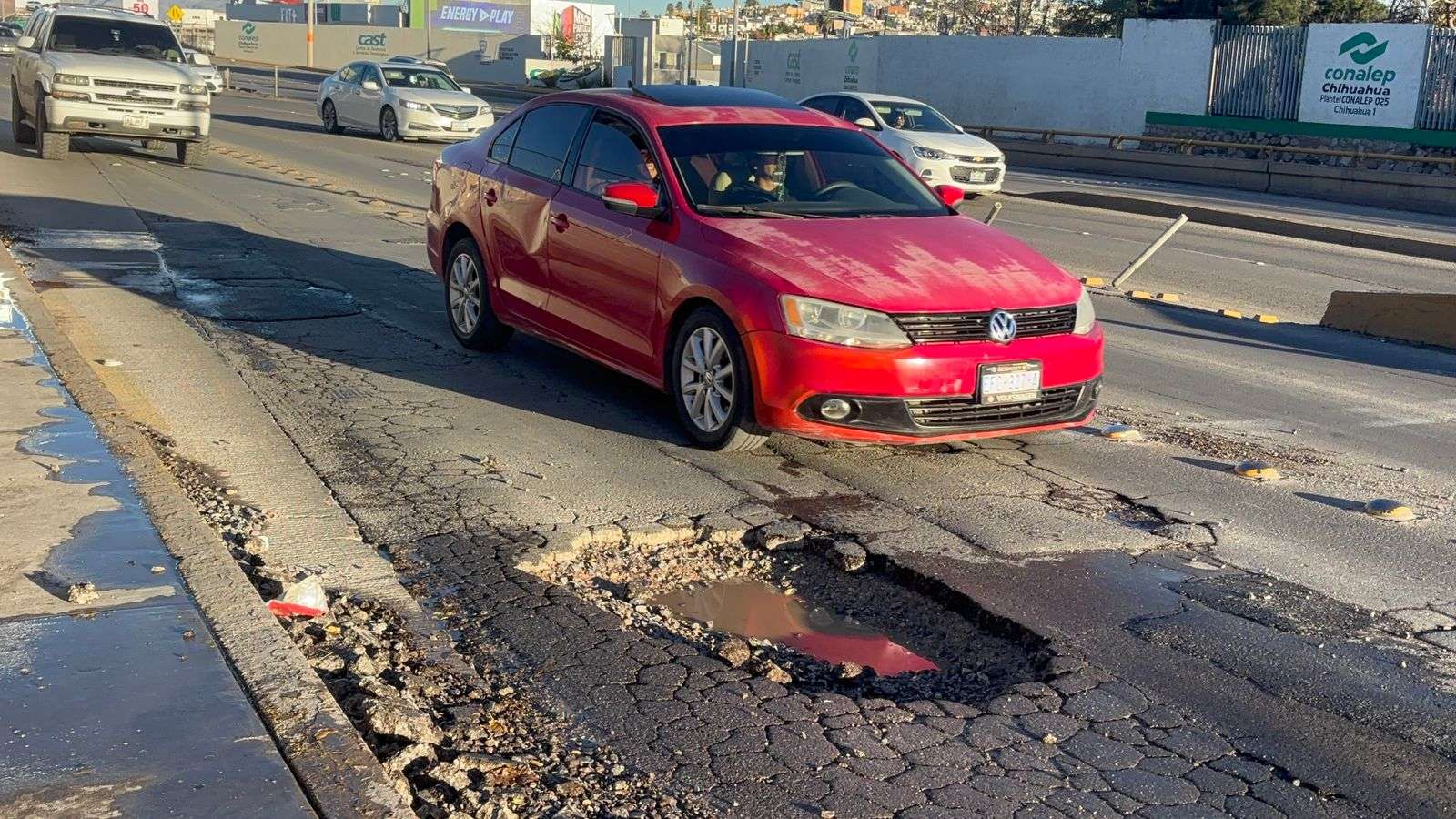 Chihuahua, Chih.– Conductores reportaron un enorme bache en la avenida La Cantera, en sentido de este a oeste, antes de llegar al periférico de la Juventud, justo frente a las instalaciones del Conalep II, pues señalan que representa un riesgo latente.