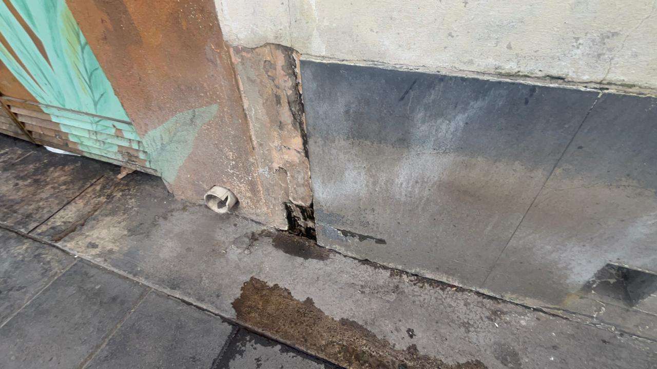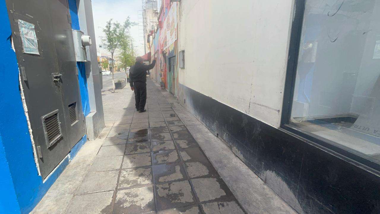 Sin embargo, la preocupación mayor radica en un establecimiento comercial que abarca desde la calle Libertad hasta la Juárez. Según el reporte del personal de seguridad, una de las paredes de este negocio presenta graves filtraciones, lo que ha generado el temor fundado de que la estructura pueda desplomarse debido al reblandecimiento del terreno y los muros.