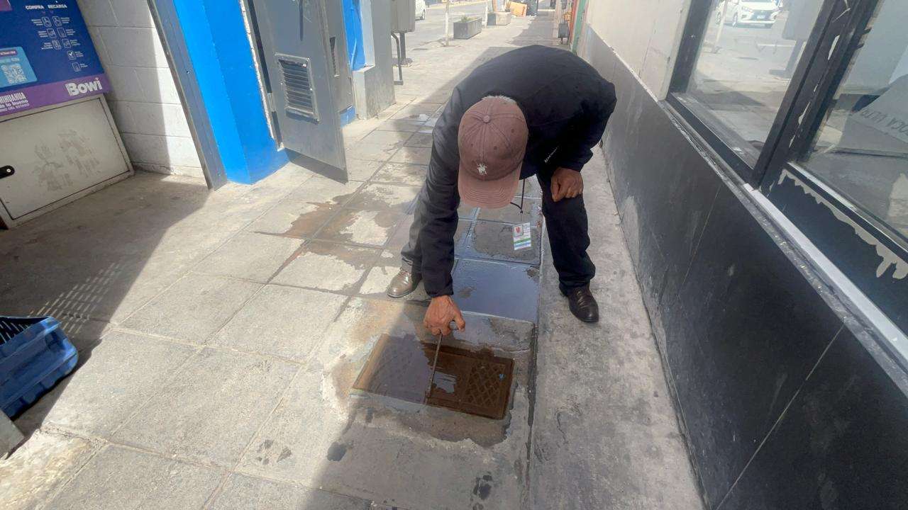 Los hechos se documentaron en la intersección de la avenida Juárez y la avenida Independencia. En este punto, ciudadanos reportaron una alcantarilla de agua potable de la cual brota un caudal constante; el líquido recorre la banqueta, filtrándose peligrosamente entre los adoquines y extendiéndose por varios metros, lo que dificulta significativamente el paso peatonal.