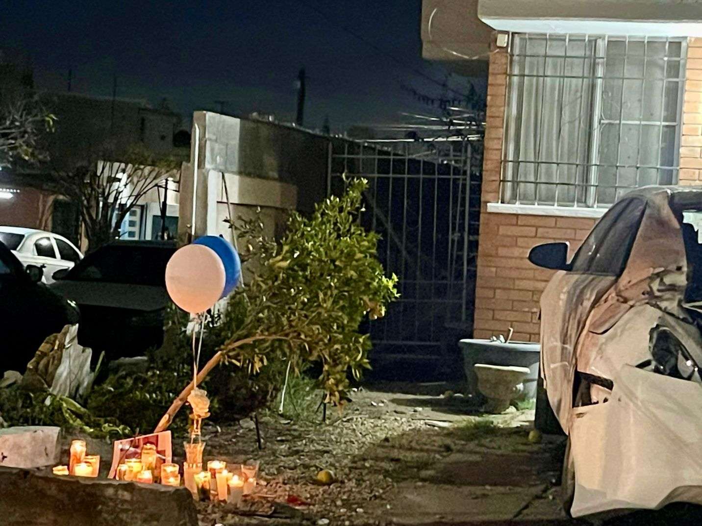 En el lugar del accidente colocaron globos, arreglos florales y veladoras, como muestra de duelo y homenaje, justo en el punto donde el menor falleció.