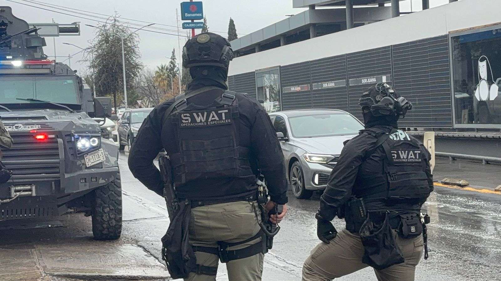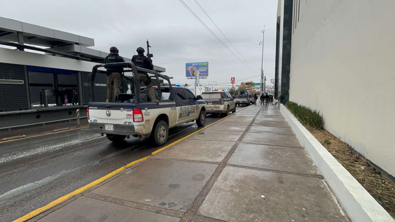 En el sitio se observa la presencia de al menos 13 unidades de la Secretaría de Seguridad Pública Estatal, así como una tanqueta y dos unidades del Ejército Mexicano, lo que generó expectación entre automovilistas y transeúntes de la zona.