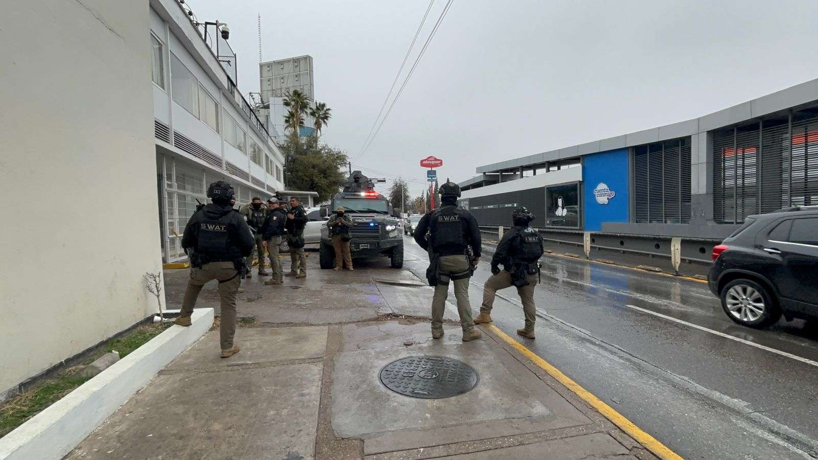 Chihuahua, Chih.– Un intenso operativo de seguridad se desplegó al exterior de las instalaciones de la Fiscalía General de la República (FGR), ubicadas sobre la avenida Universidad, con motivo de la presentación de cuatro personas detenidas en el municipio de Guachochi.
