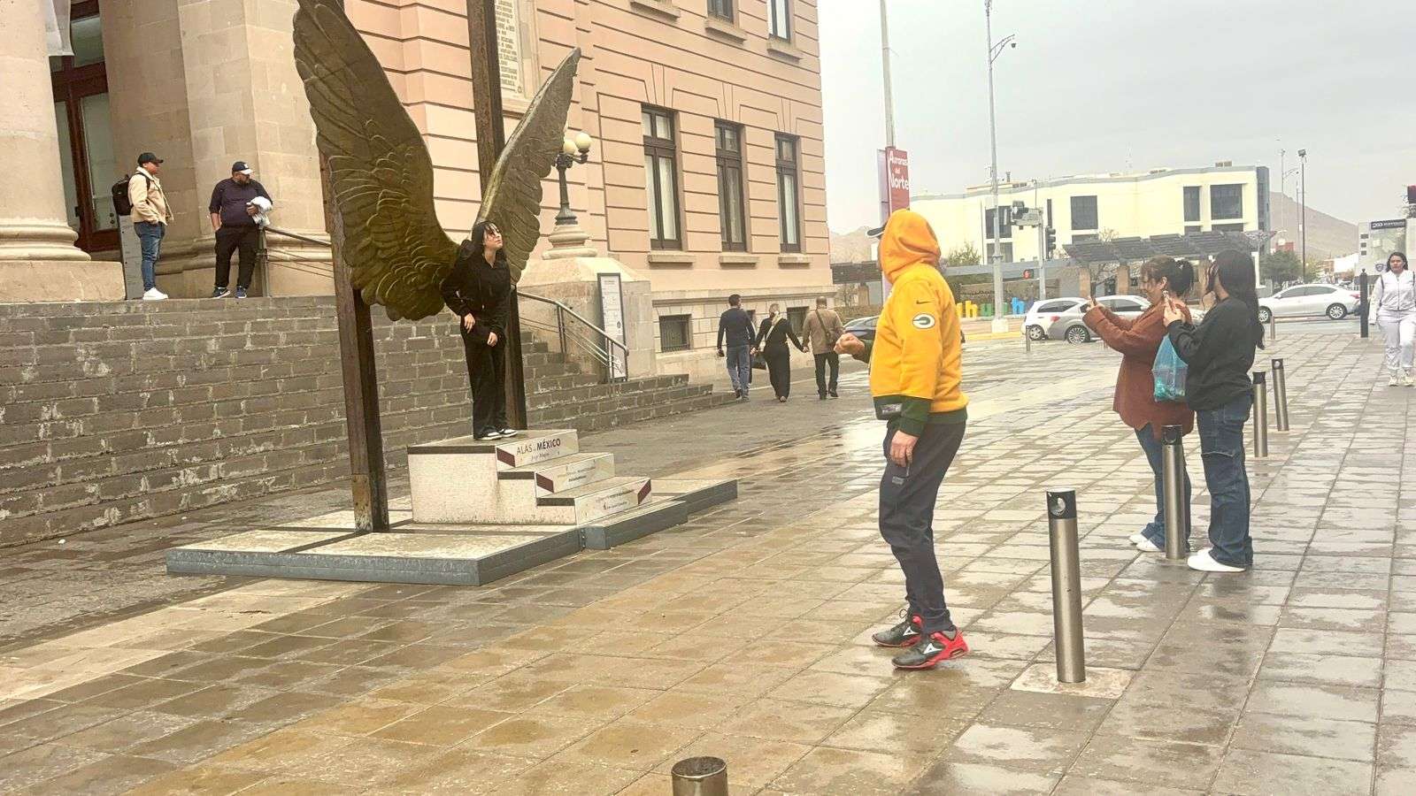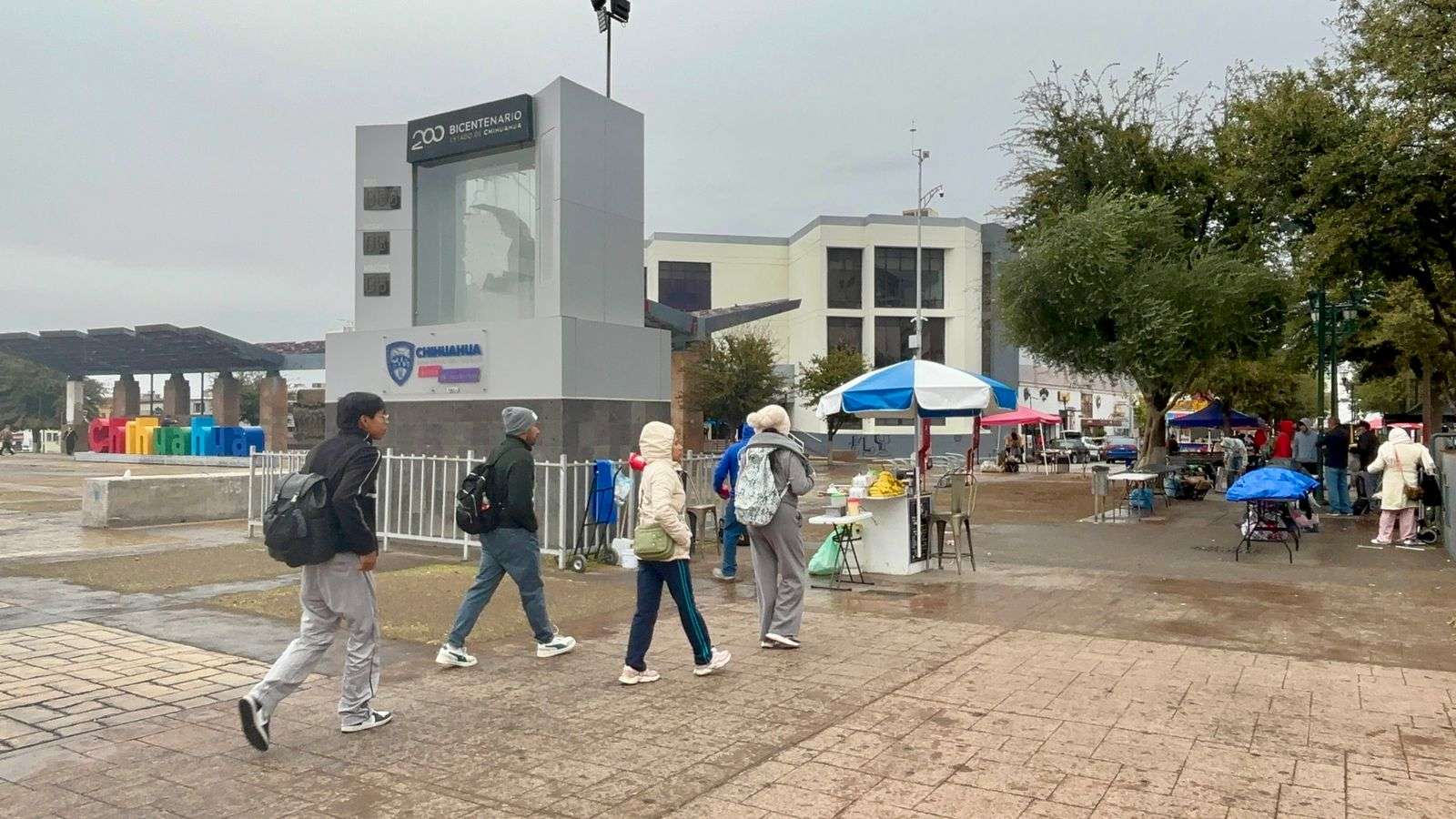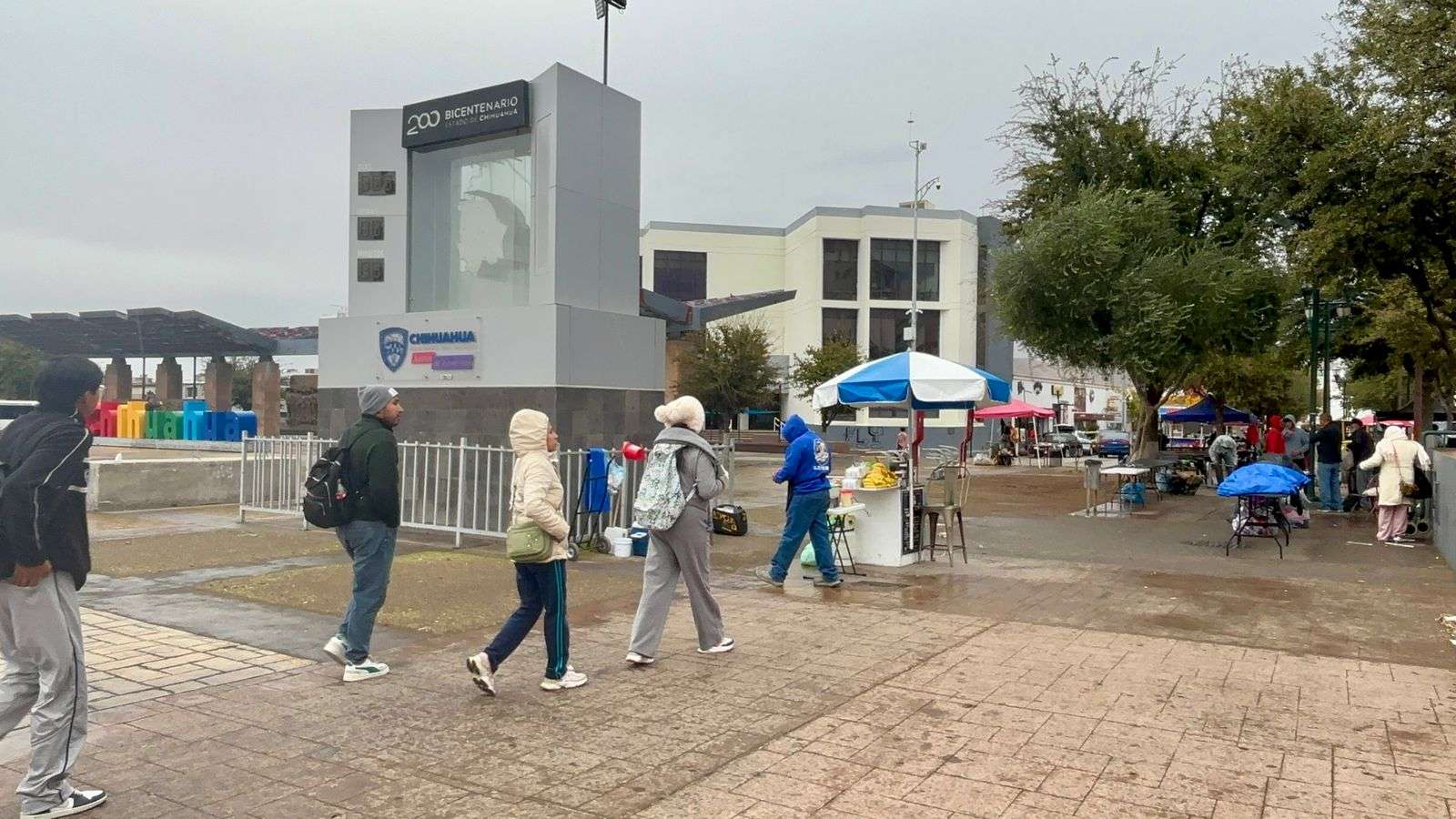 Chihuahua. - A pesar de la presencia de lluvia en el centro de la ciudad, los chihuahuenses continúan con sus actividades y disfrutan del clima lluvioso.
