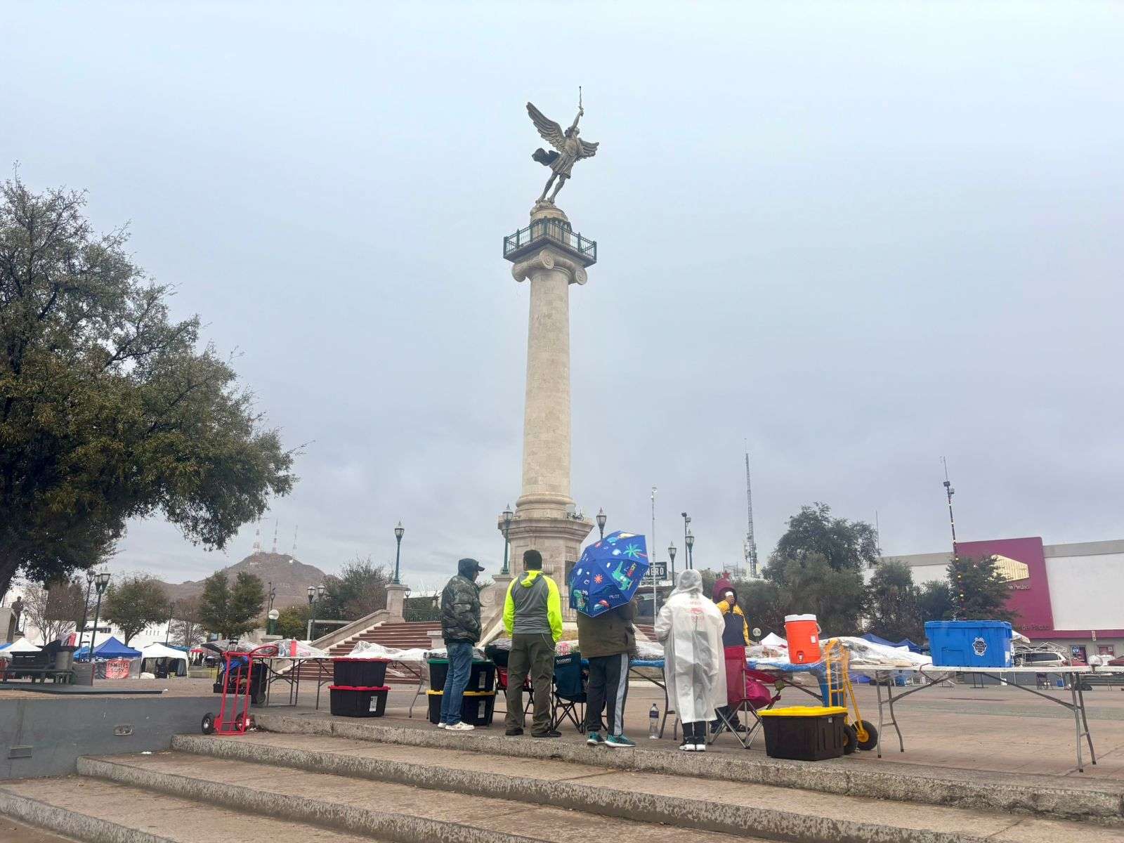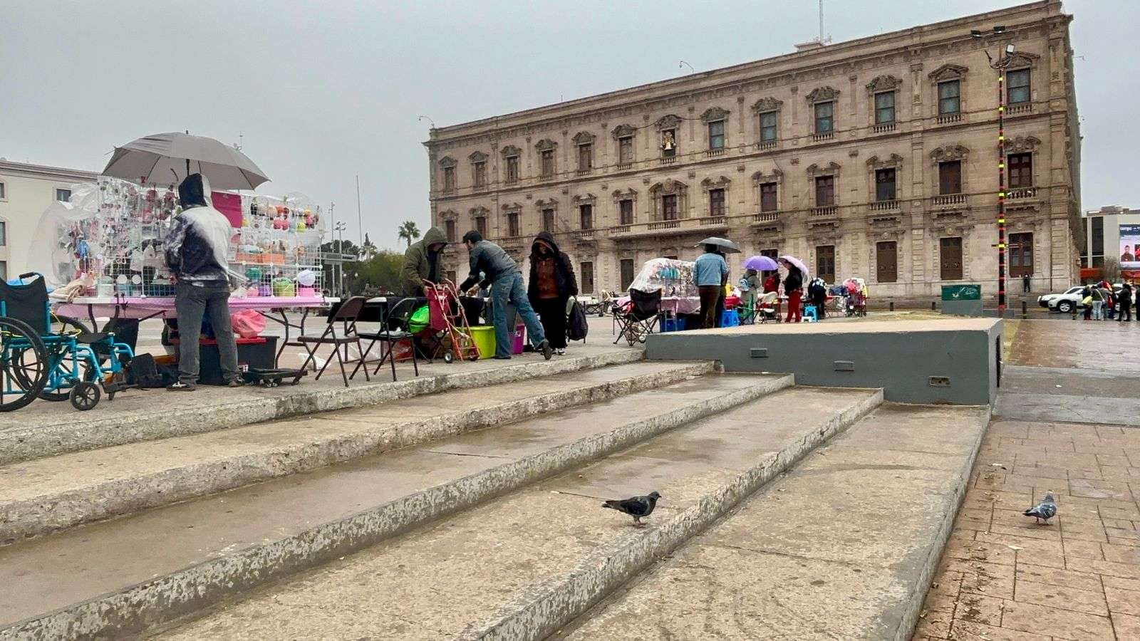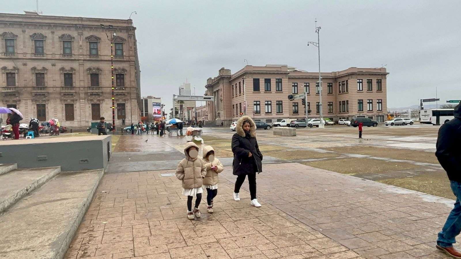 Chihuahua. - A pesar de la presencia de lluvia en el centro de la ciudad, los chihuahuenses continúan con sus actividades y disfrutan del clima lluvioso.